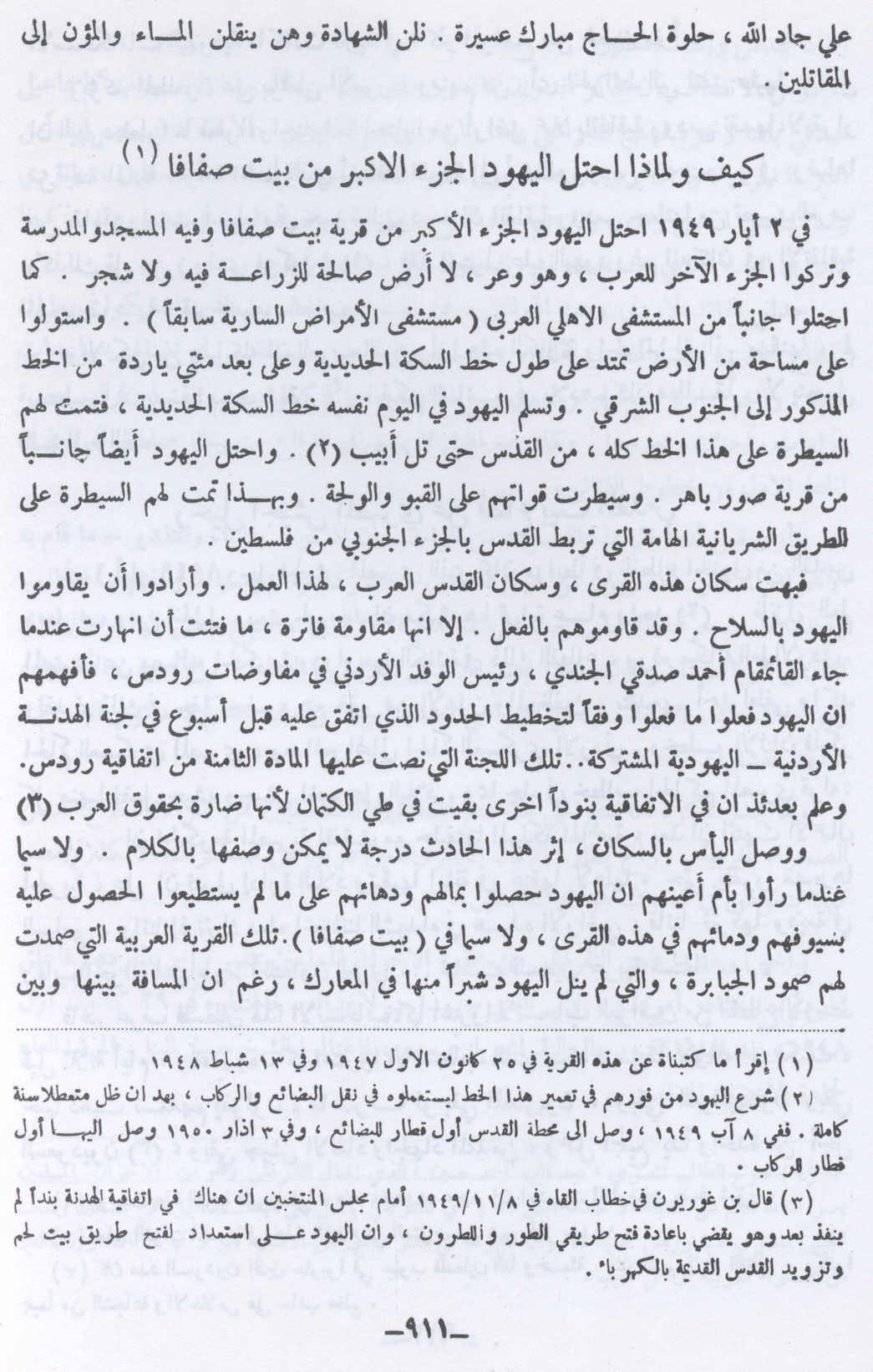 كيف ولماذا اُحتل الجزء الأكبر من بيت صفافا- 2 أيار 1949 -- النكبة الفلسطينية والفردوس المفقود للأستاذ عارف العارف |