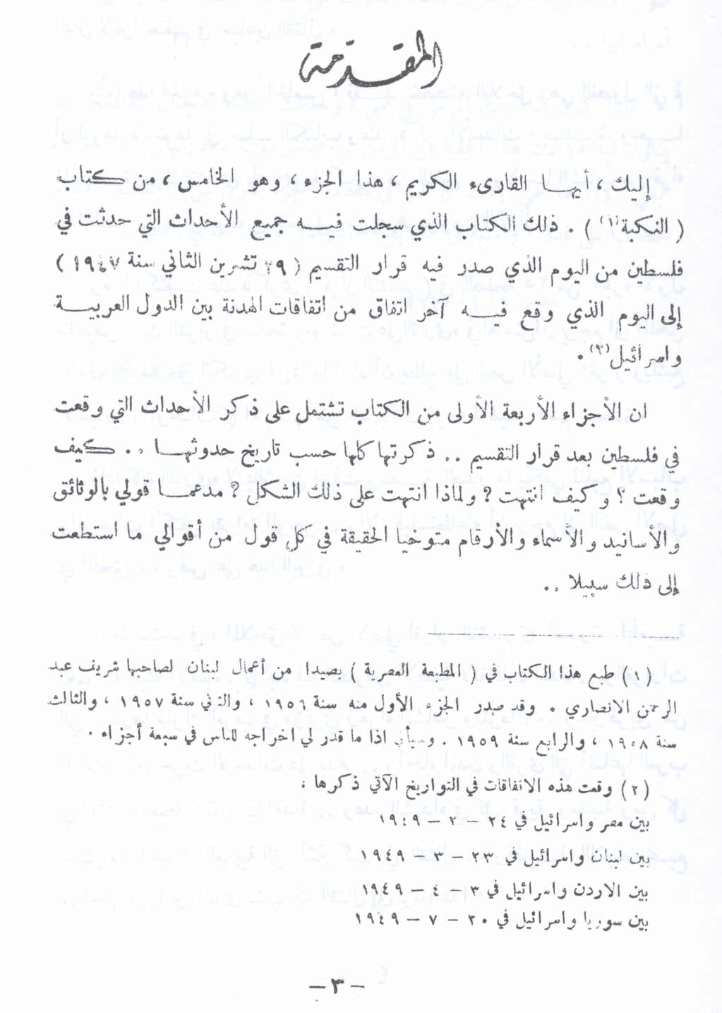 المقدمة (5) -- النكبة الفلسطينية والفردوس المفقود للأستاذ عارف العارف |