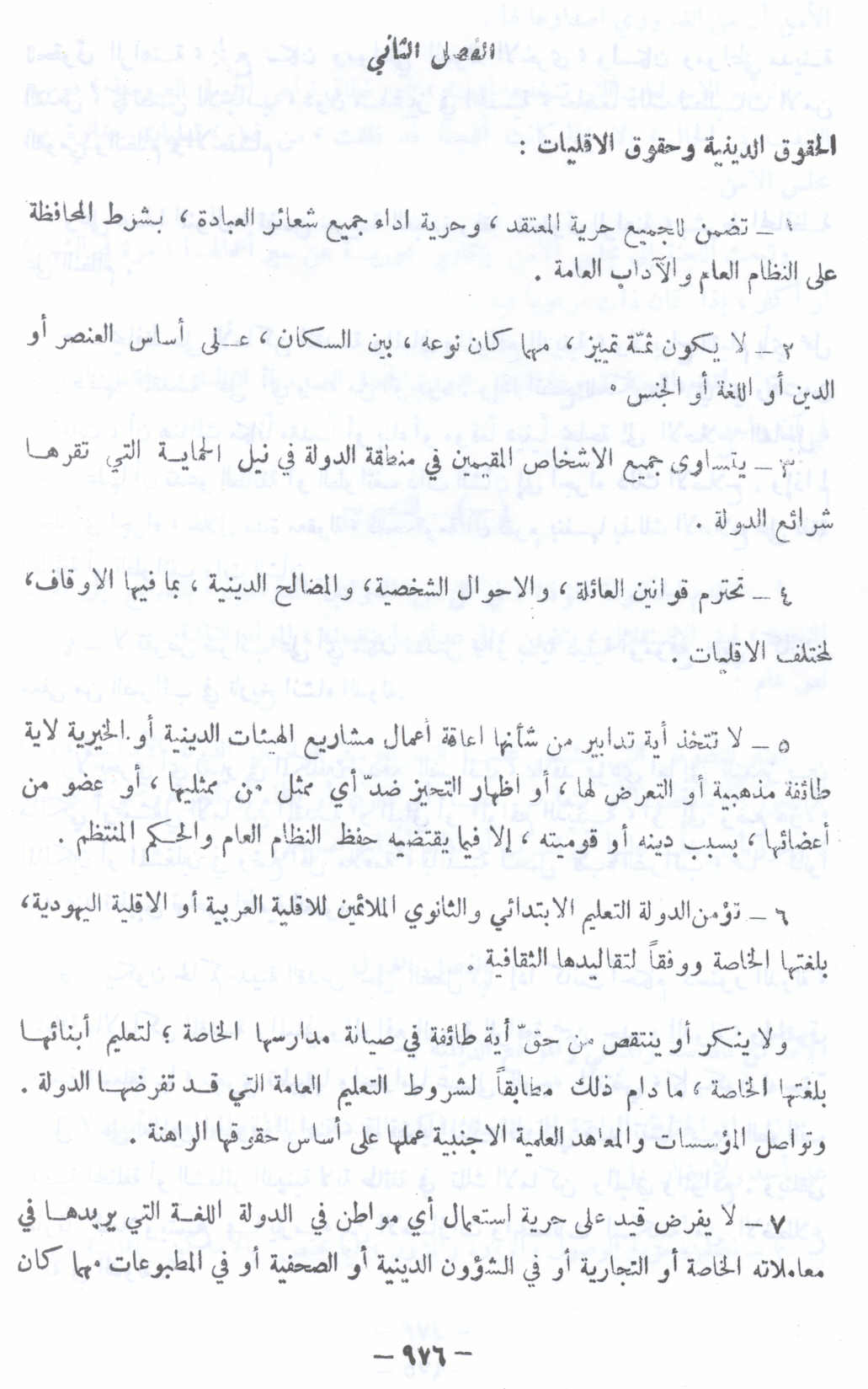 الفصل الثاني: الحقوق الدينية وحقوق الأقليات -- النكبة الفلسطينية والفردوس المفقود للأستاذ عارف العارف |
