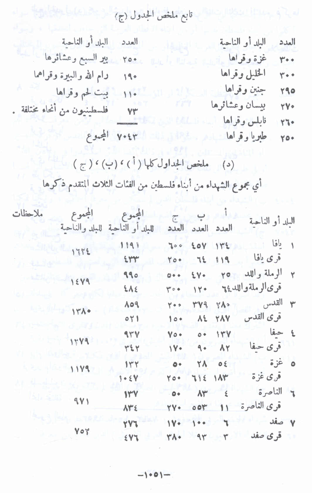 النكبة الفلسطينية والفردوس المفقود للأستاذ عارف العارف - المجلد الخامس - صفحة 1051 |