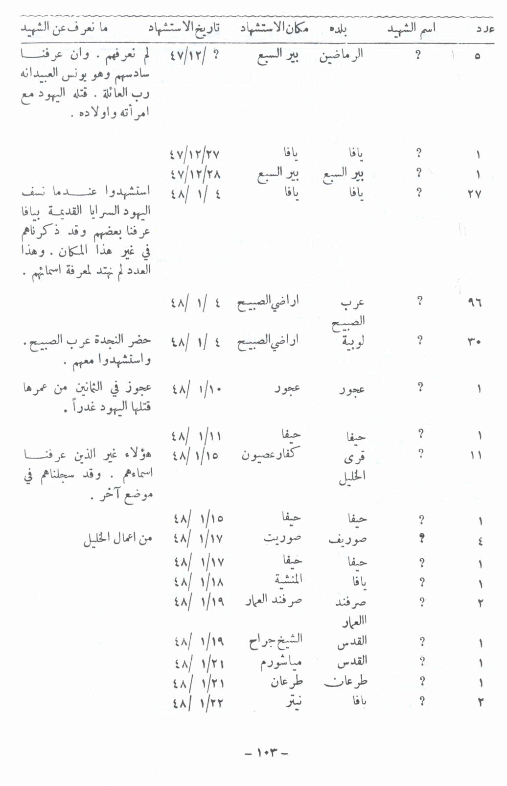 النكبة الفلسطينية والفردوس المفقود للأستاذ عارف العارف - المجلد السادس - صفحة 103 |