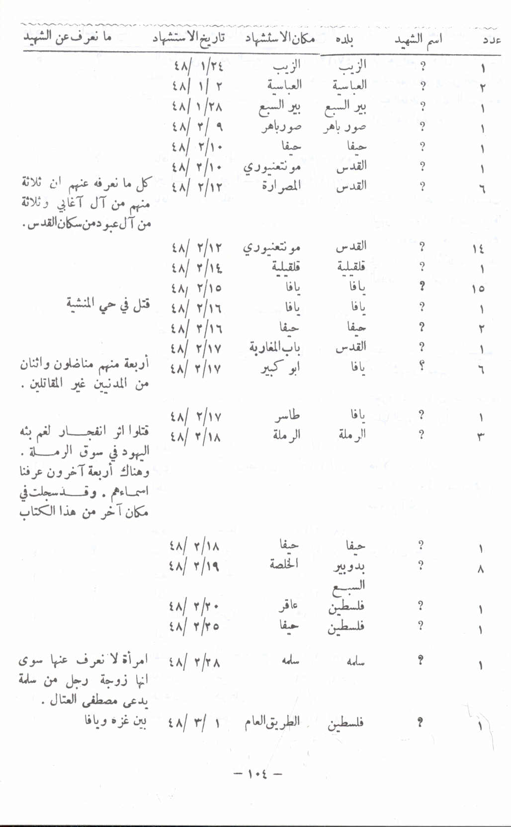 النكبة الفلسطينية والفردوس المفقود للأستاذ عارف العارف - المجلد السادس - صفحة 104 |