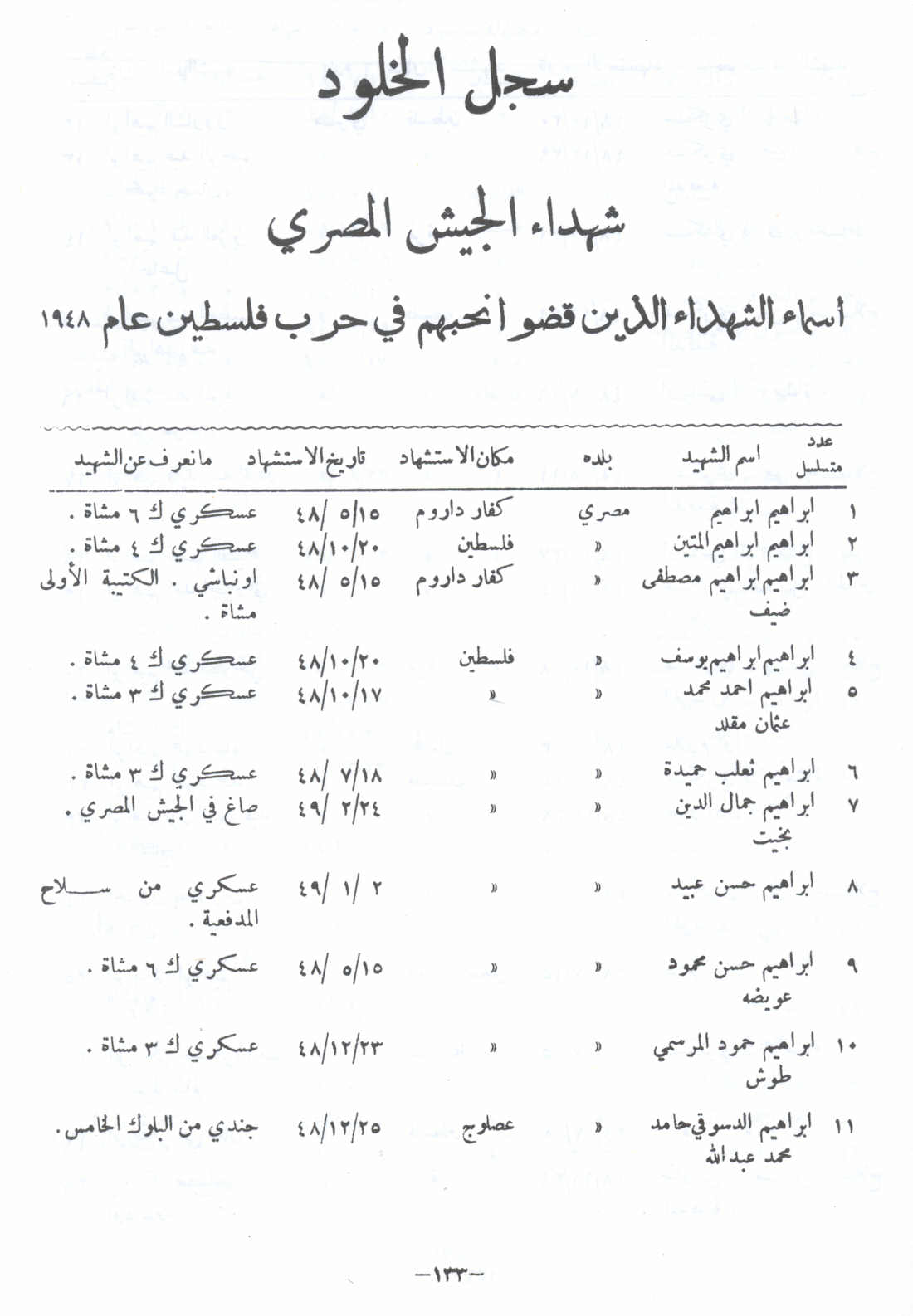 أسماء شهداء الجيش المصري الذين قضوا نحبهم في حرب فلسطين عام 1948 -- النكبة الفلسطينية والفردوس المفقود للأستاذ عارف العارف |