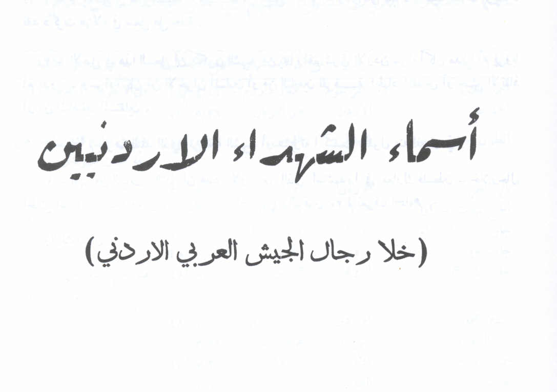 أسماء الشهداء الأردنيين (خلا رجال الجيش العربي الأردني) الذين عرفنا أسماءهم زموضع إستشهادهم -- النكبة الفلسطينية والفردوس المفقود للأستاذ عارف العارف |