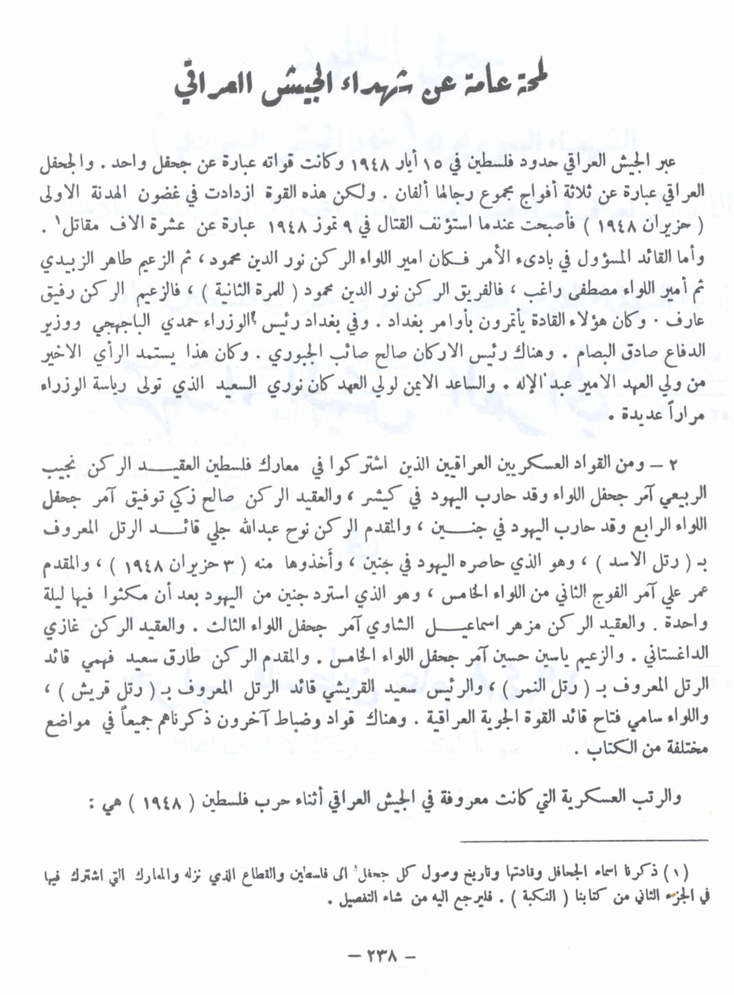 لمحة عن شهداء الجيش العراقي -- النكبة الفلسطينية والفردوس المفقود للأستاذ عارف العارف |
