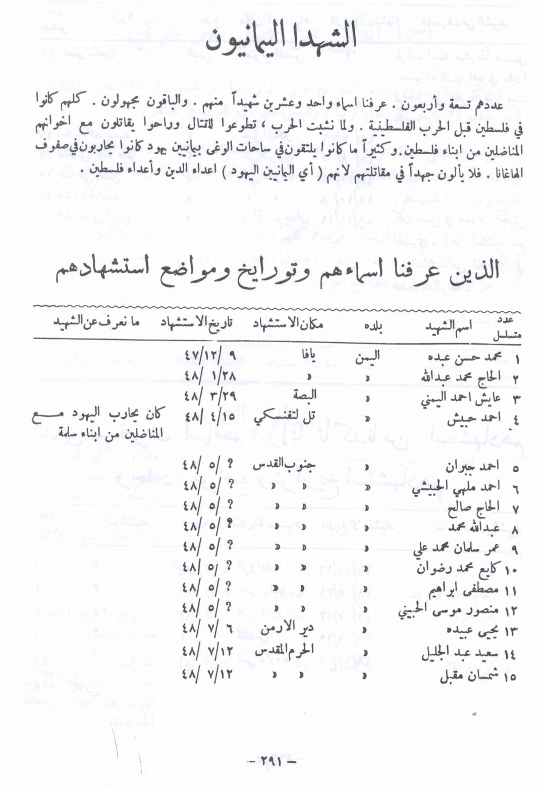 أسماء الشهداء اليمنيون -- النكبة الفلسطينية والفردوس المفقود للأستاذ عارف العارف |