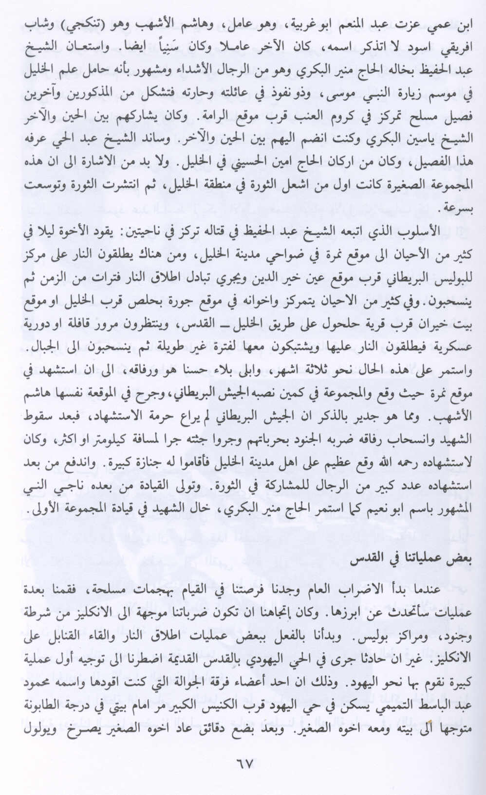 في خضم النضال العربي الفلسطيني لشيخ المجاهدين بهجت أبو غربية - صفحة 67 |
