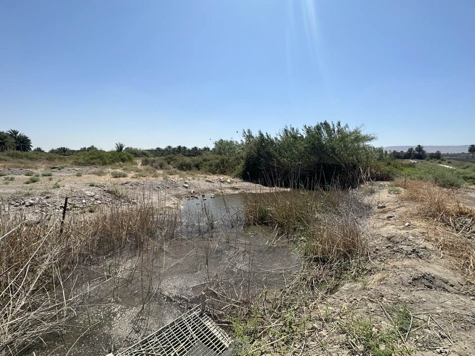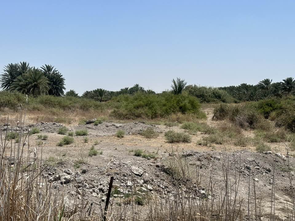 The site and lands are cultivated. The remains of date palm trees can be seen, scattered across the northern side of the site.