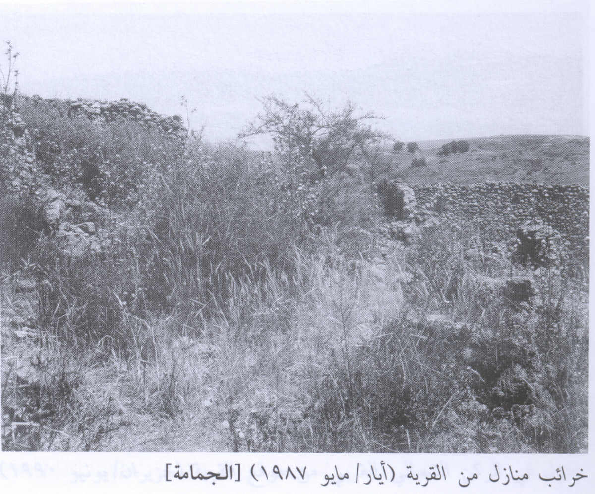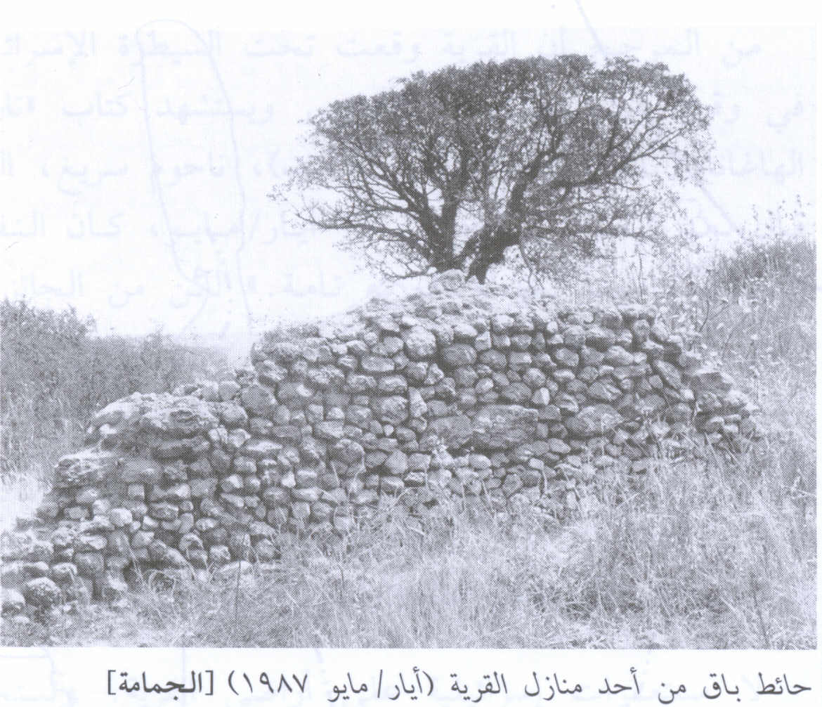 According to information given to the staff of the Galilee Center for Social Research by members of the Arab al-Atawina Bedouin tribe, who lived in the village before 1948, al-Jammama contained about 120 buildings called bakiyas; these buildings were made of stone and mud and were roofed with mud and wood. They were located on Khirbat al-Jammama and in the surrounding area; those on the site were clustered together, separated in the center by a few shops. Many of the bakiyas served as houses for the villagers, but some that were no longer in good repair were used for grain storage and as animal shelters. If the figure of 120 bakiyas is correct, it would suggest that either the figure of 1 house given in the 1931 census was a substantial undercount or that settlement had proceeded at a rapid pace after the census.