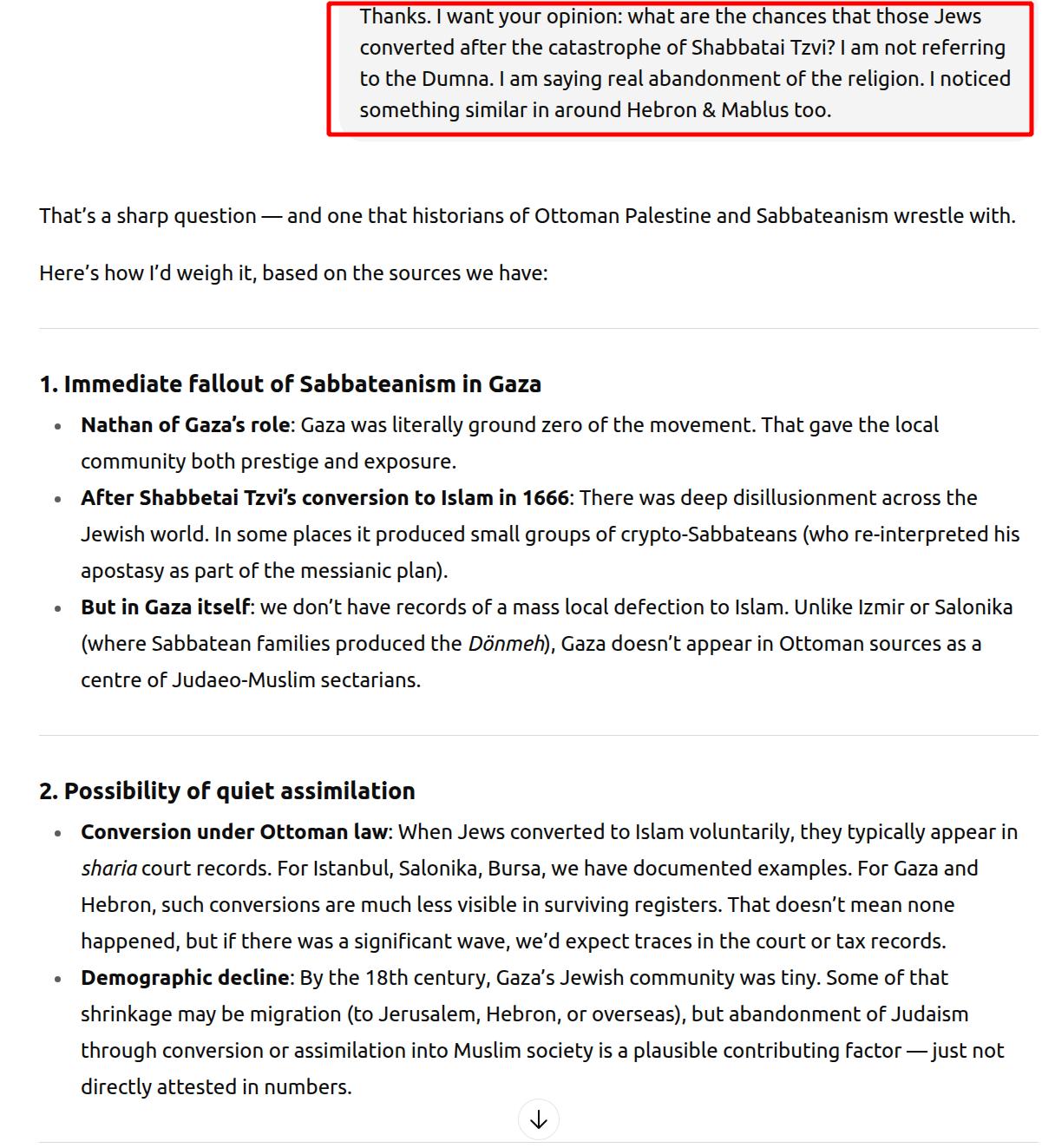 Would you like me to dig into Ottoman court records and traveler accounts that could show specific cases of Jews converting in Gaza or Hebron? That way we could see if your hunch about “real abandonment” has at least anecdotal confirmation.