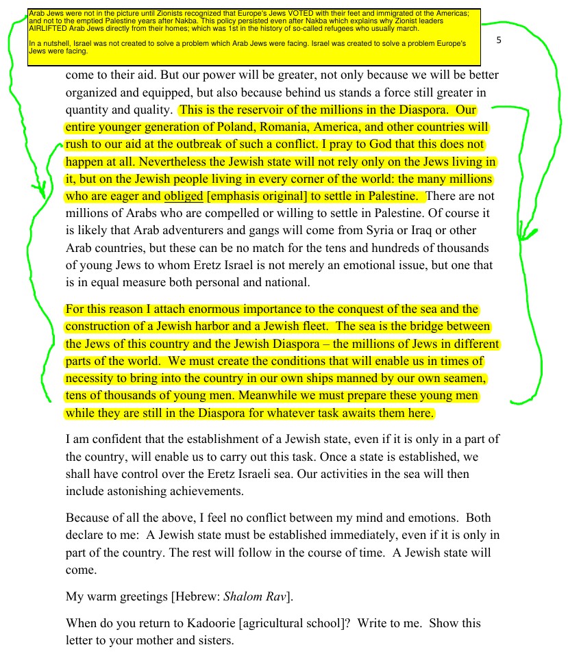 C) David admitted that the Negev was thinly populated with Jews which was barren as of the time this letter was written. This implies that the Zionist myth that Jews bloomed the Negev must have evolved way after Nakba, and we strongly suspect that was the case ONLY after the 67 War when most American Jews became Zionists (not before).