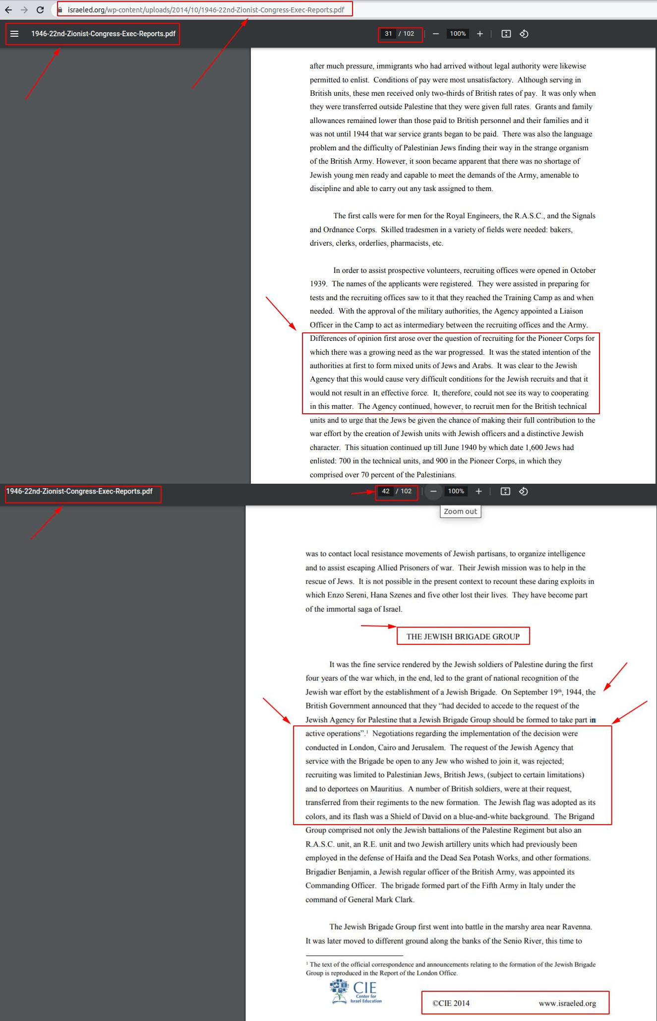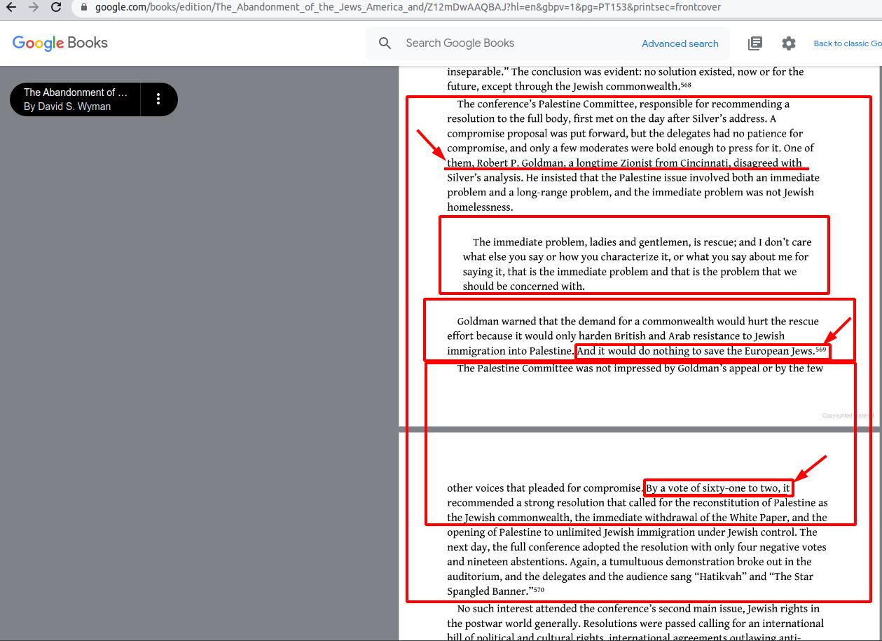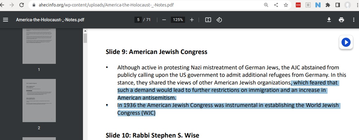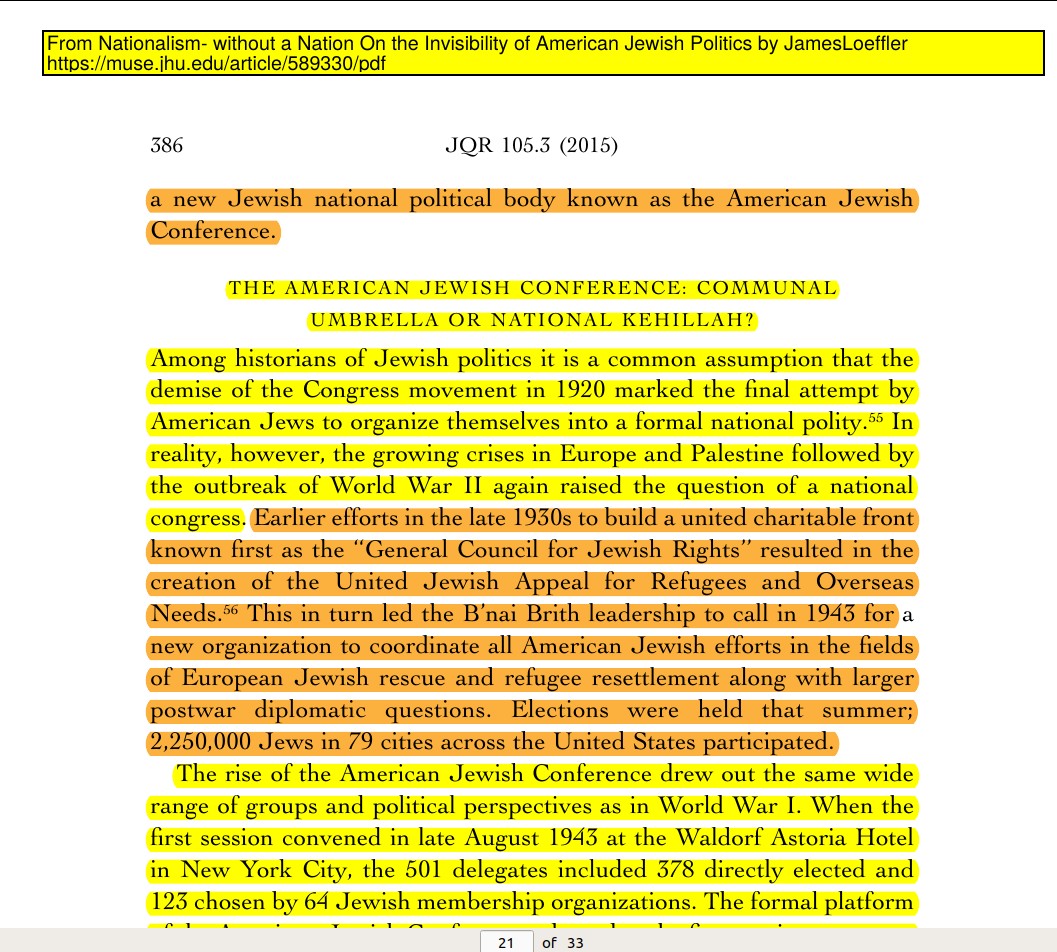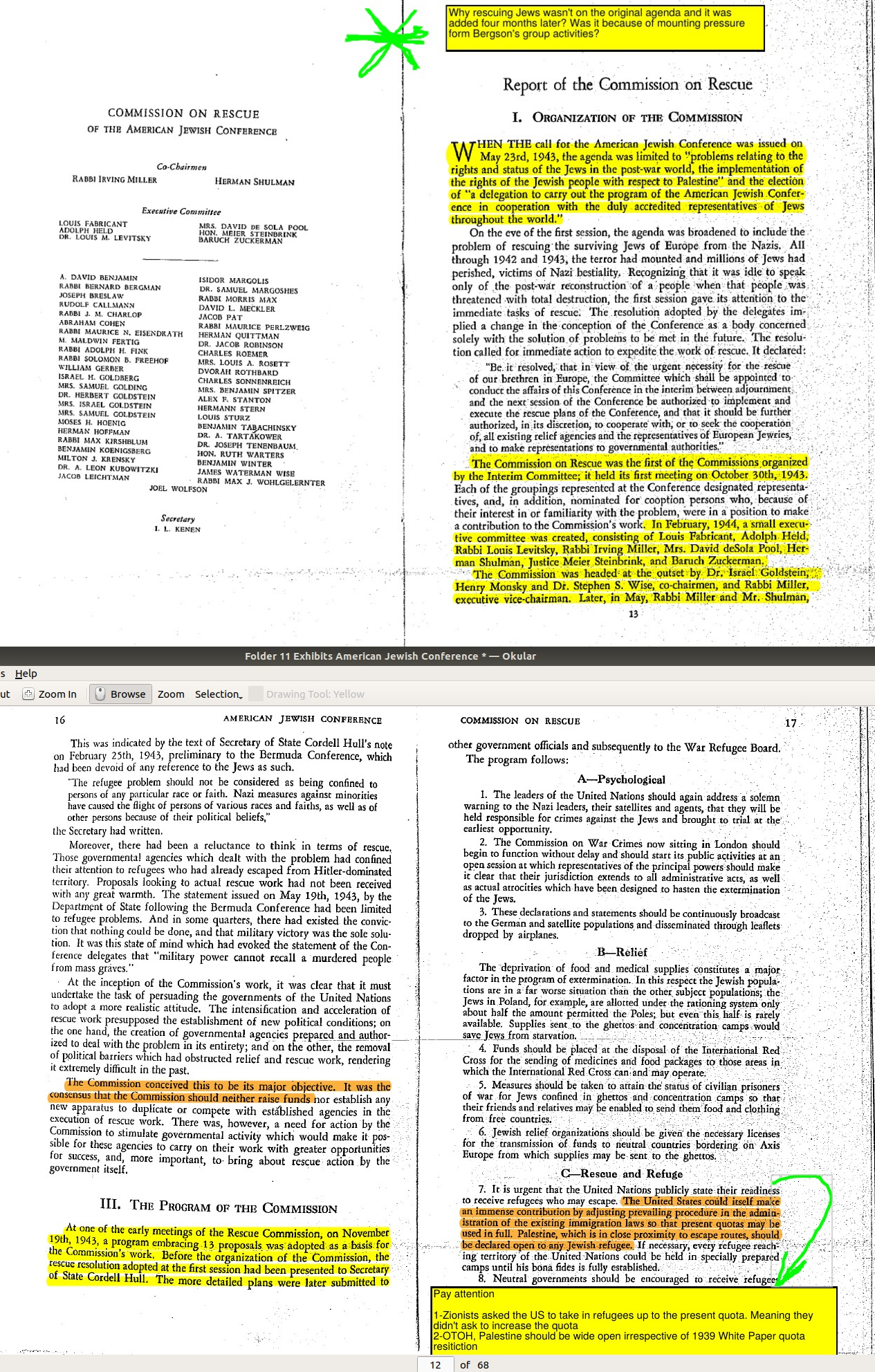 - A Primary Source: American Jewish Conference Report On The Interim Committee And Commissions On Rescue, Palestine, And Postwar in PDF with our notes added. Pay attention to what was FRONT & CENTER to the largest gathering of American Jews during WWII. A HINT: it wasn't rescuing Europe's Jews, and the answer starts with a P and ends with an E!