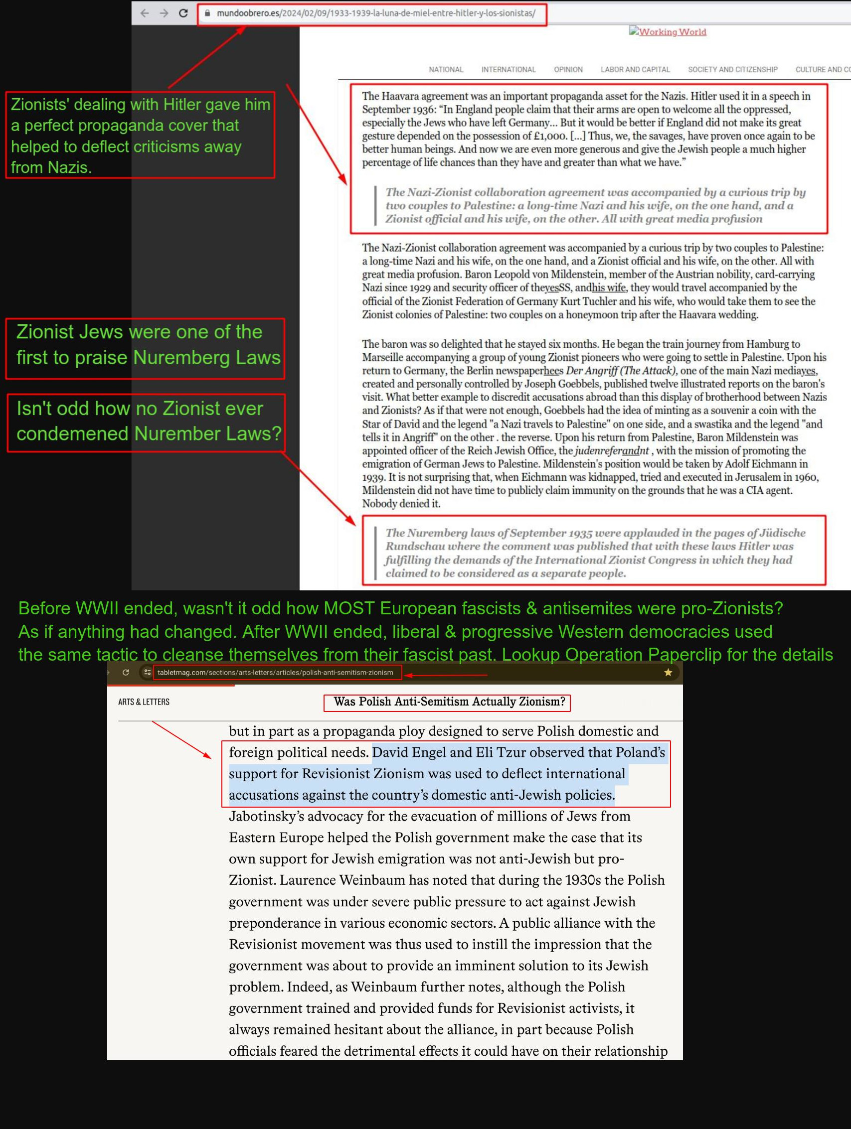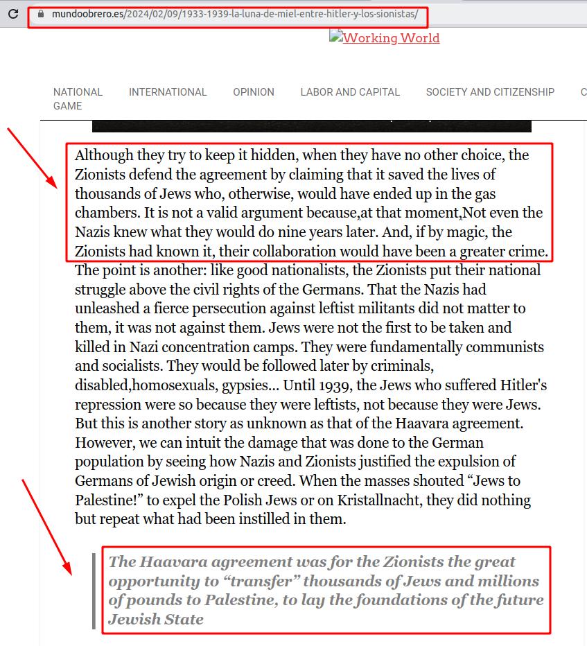 - Excellent article on the Haavara Agreement & Zionist-Nazi collaborations during the 1930s. Although the article is written in Spanish, Google Translate does an excellent job of translating it.