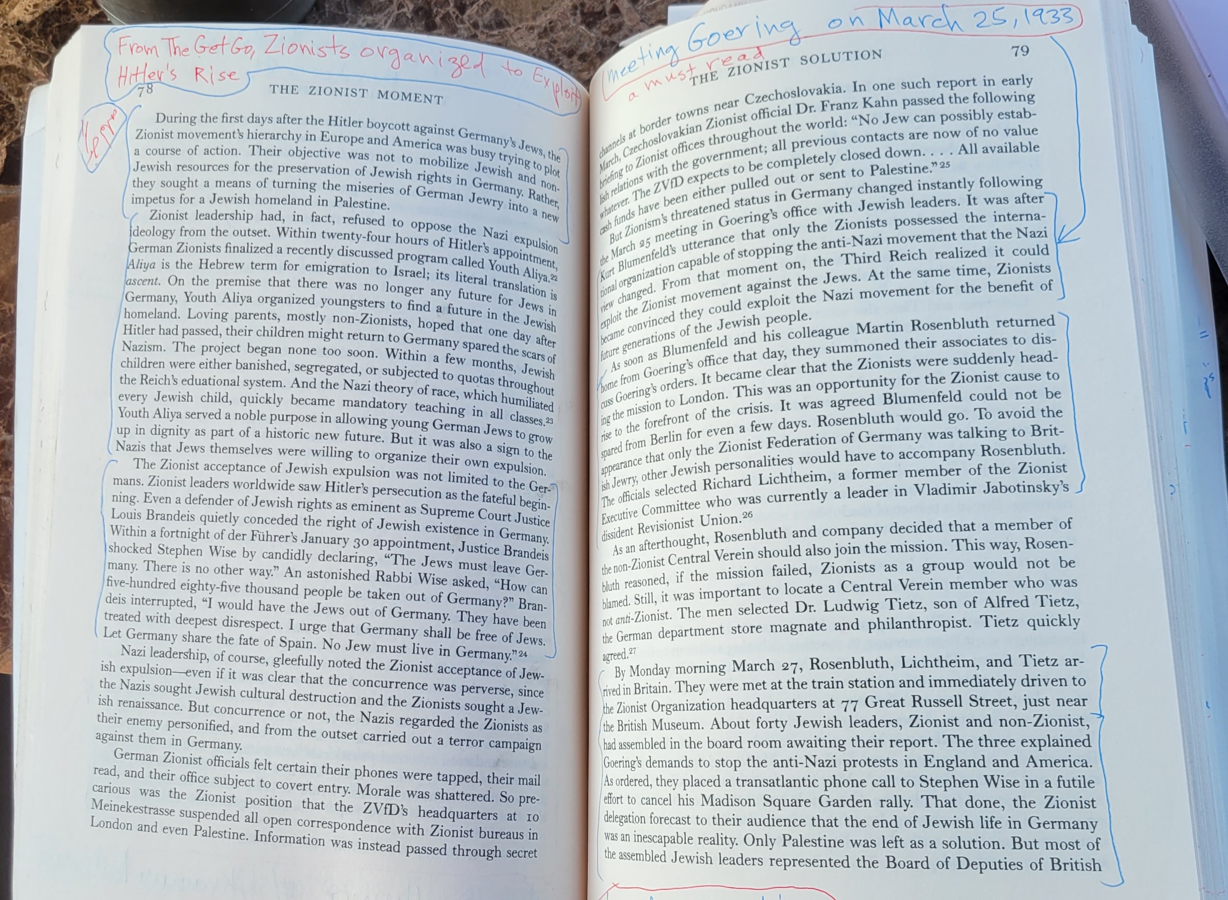 As you contemplate our research on Haavara and Zionists' response to the Holocaust, please keep in mind the following important points: A) This wealth transfer financial instrument was first engineered by the founder of the Zionist movement, Theodor Herzl, in the late 19th century. Herzl attempted to implement it first in Uganda, where he died thinking the "Jewish state" would be created. B) Before WWII, Zionists were a minority with very limited resources but were well-organized and had a BIG influence on US-based Jewish organizations. C) Zionists were considered a small and an extreme fringe in Jewish politics, which was dominated by BUND, who were assimilationist Jews, socialists, liberals, and against the nation-state concept (Albert Einstein, Judah Magnes, and Hannah Arendt were great examples). D) After WWII, Zionists dominated Jewish politics after the destruction of BUND (Abraham Burg, p. 37). E) Since Haavara was implemented in the 1930s, it should be judged as if WWII and the Holocaust didn't happen to avoid the fallacy of judging the past from the present. F) The Palestinian and Jewish tragedies will not be understood unless the Haavara Agreement is understood fully, and in conjunction with the events, that occurred in Europe, before and after WWI and WWII.
