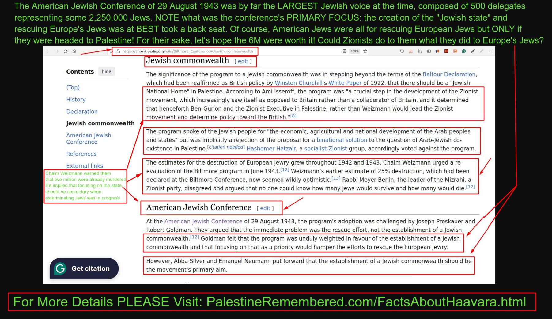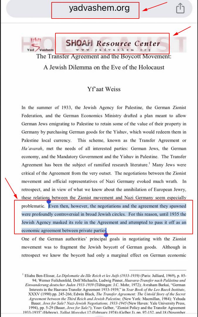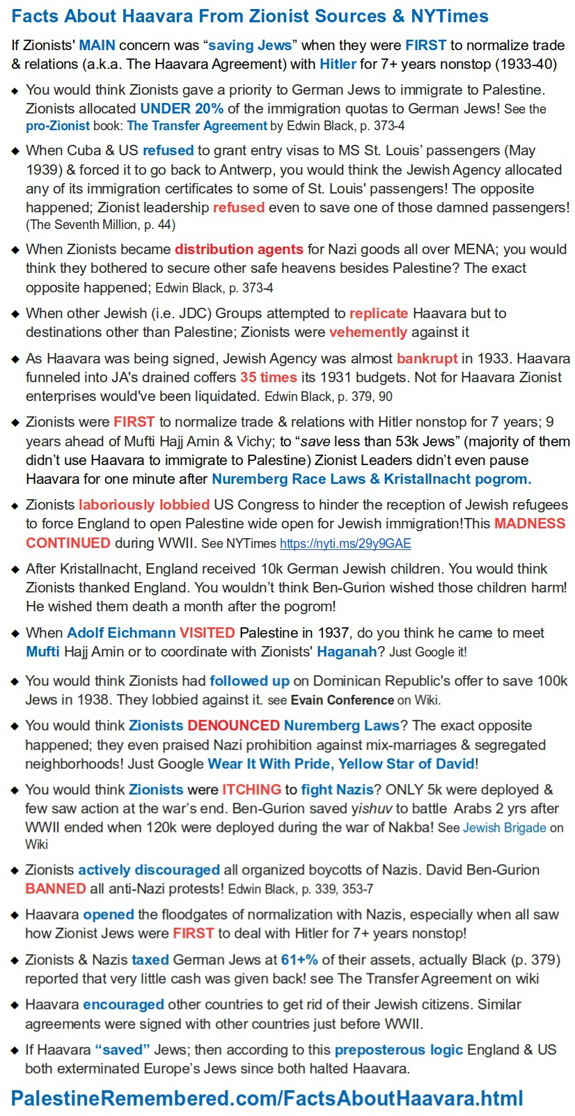 - Wikipedia: Haavara Agreement. Please pay attention to how Wikipedia's editors STILL publish these obvious lies for the past two plus decades.