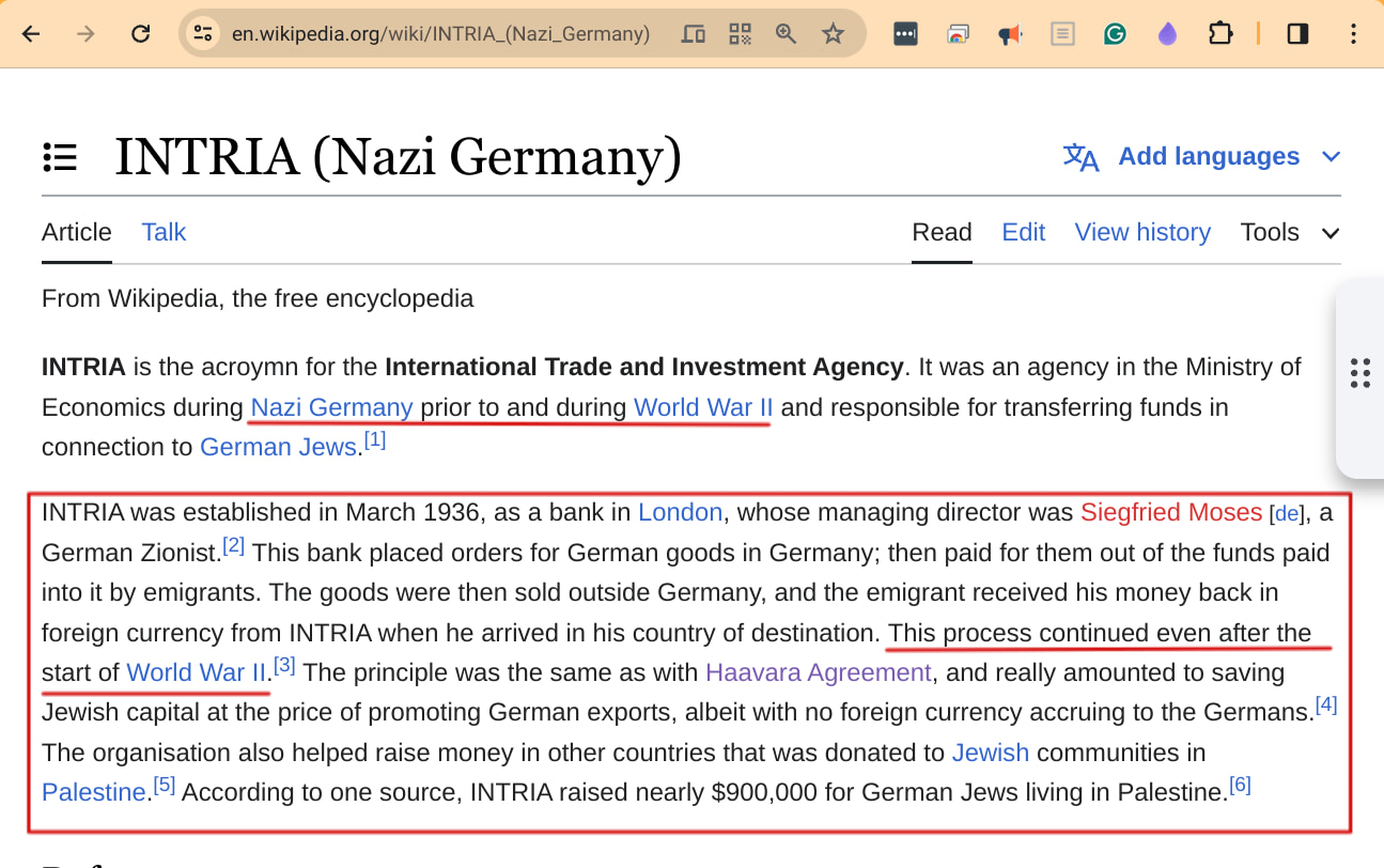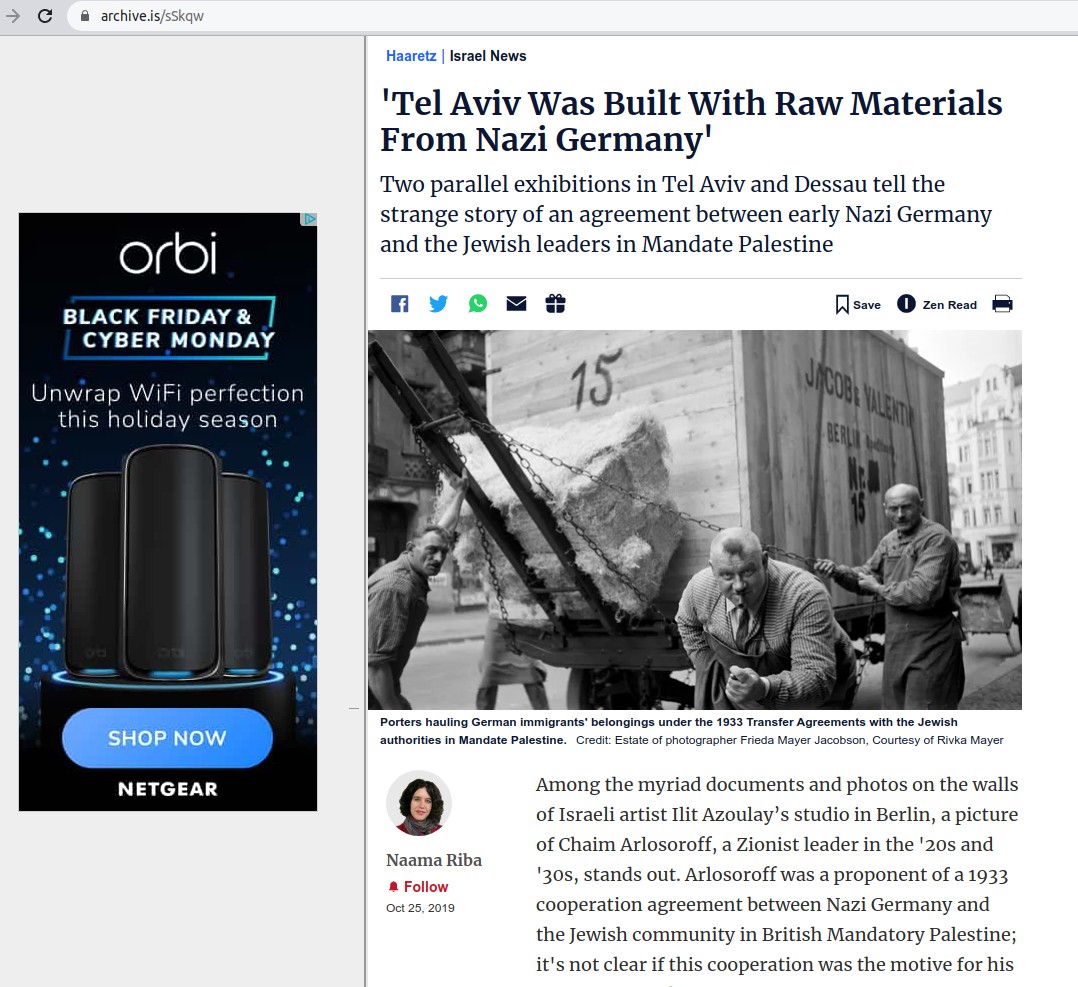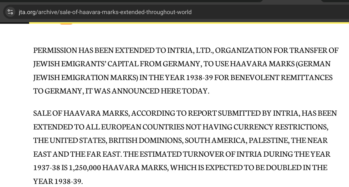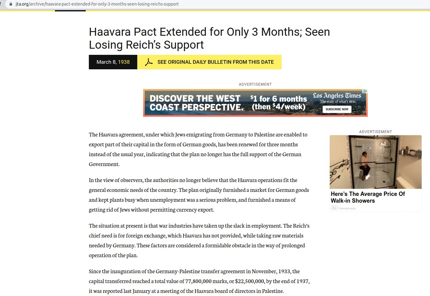 - Wikipedia: Haavara Agreement. Please pay attention to how Wikipedia's editors STILL publish these obvious lies for the past two plus decades.