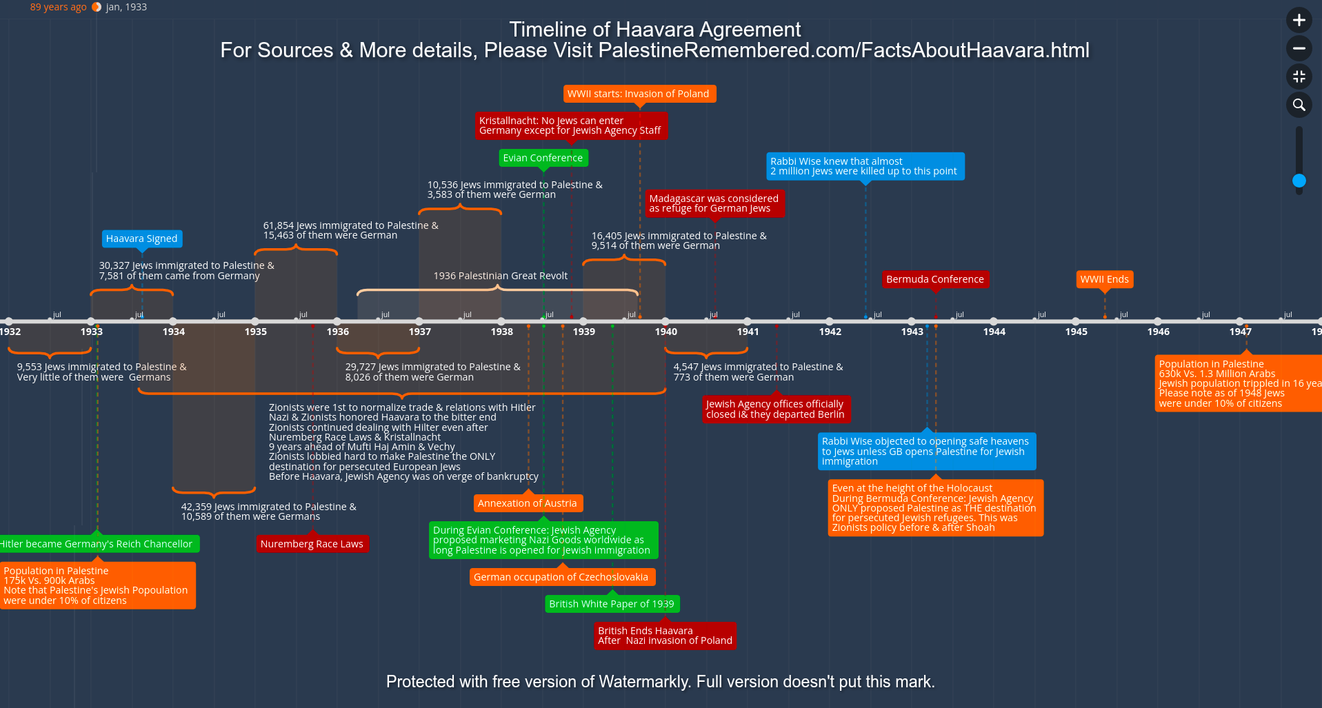 Click here for an image of this timeline, and here is a step by step how to guide (a kind of a Haavara Blueprint) of the Haavara Agreement showing how it was instrumental in the creation of the "Jewish state."