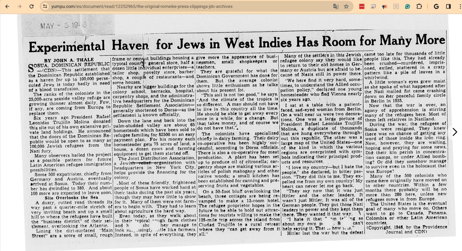 - Book: Tropical Zion: General Trujillo, FDR, and the Jews of Sosúa by Allen Wells