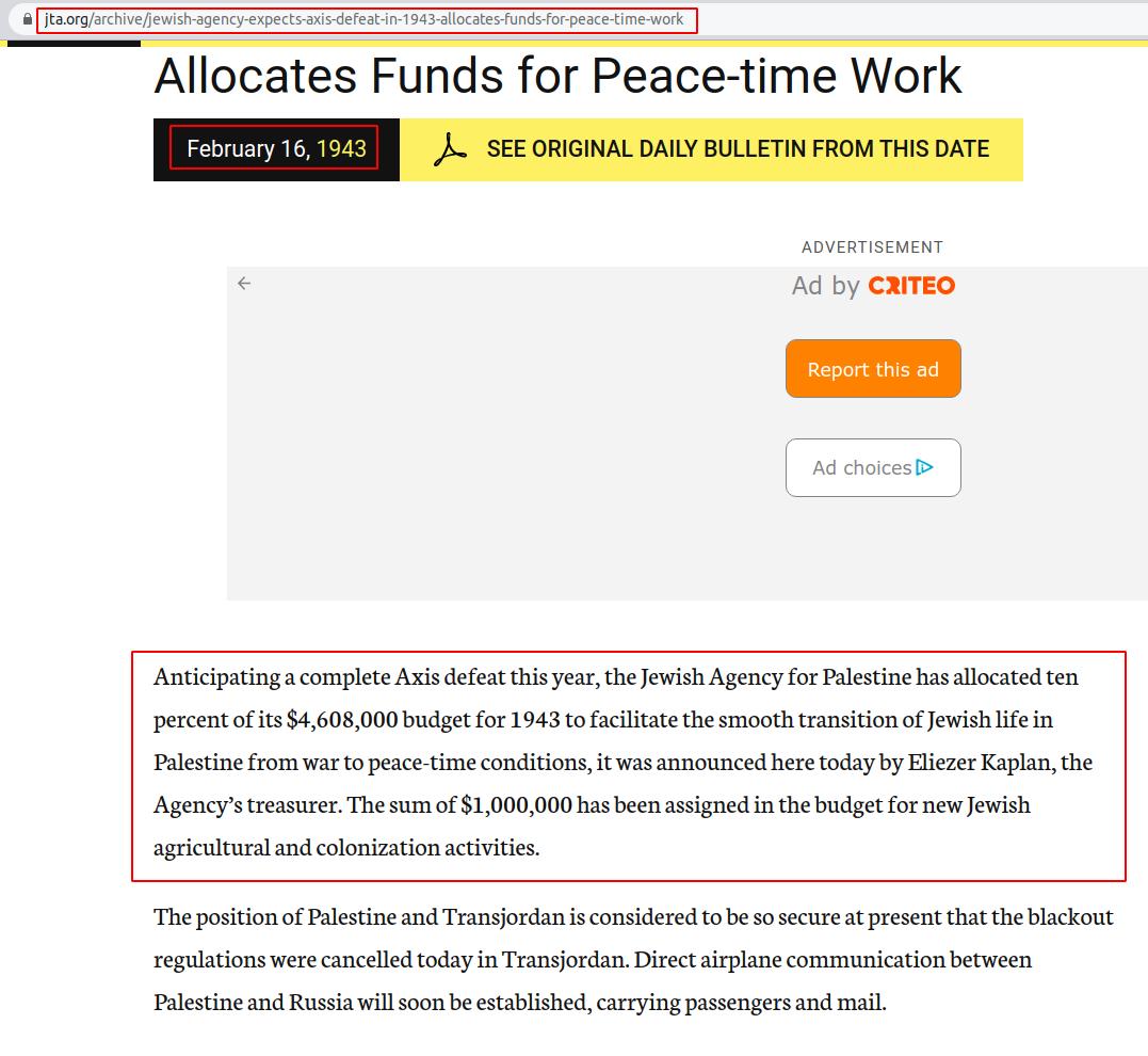 - NY Times: Two advertisements by Zionists in the early 1943 that expose Zionists' treason at the height of the calamity