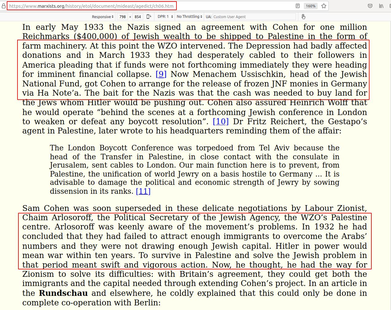 - In return, Zionists channeled a fraction of the liquidated German Jewish wealth to build the foundation of their "Jewish state" 15 years ahead of its time.