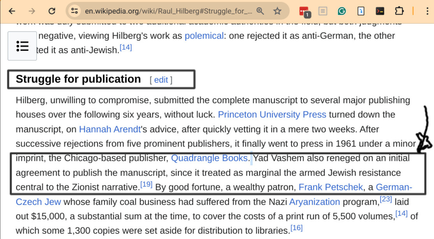 - Excellent review of Raul Hilberg's work in The Destruction of the European Jews. here is a softcopy for the whole book. This is one of the earliest work on the Holocaust which examined primary sources. Mr. Hilberg struggled to find a published.