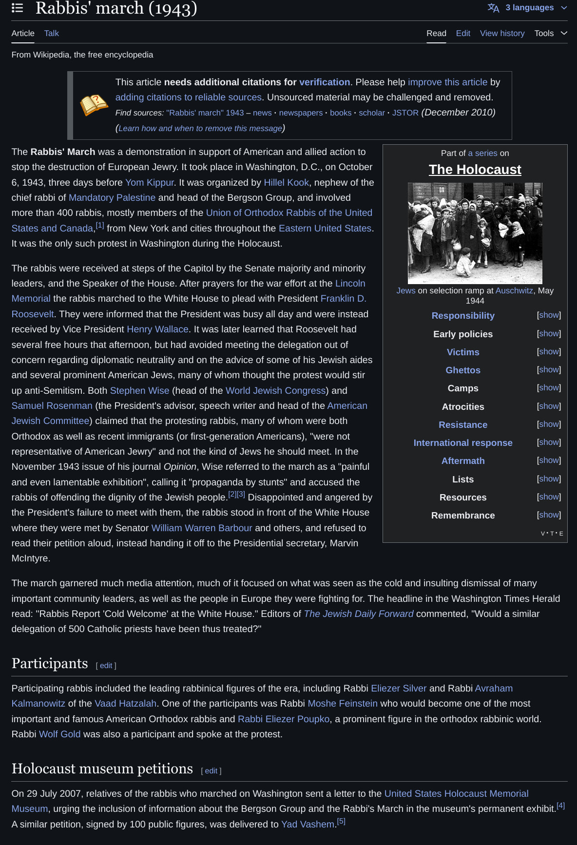 Fake Valor: When American Rabbis marched in DC in Oct. 1943 to lobby for rescuing Jews, you would think Zionists supported them?