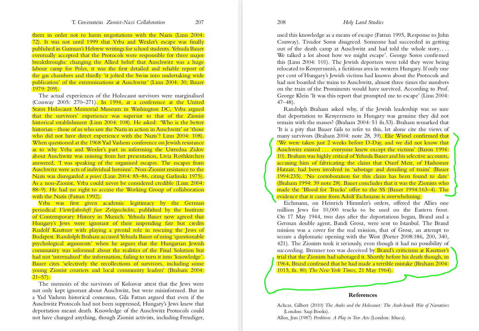 - ZIONIST-NAZI COLLABORATION AND THE HOLOCAUST: A HISTORICAL ABERRATION? LENNI BRENNER REVISITED by Tony Greenstein (PDF)