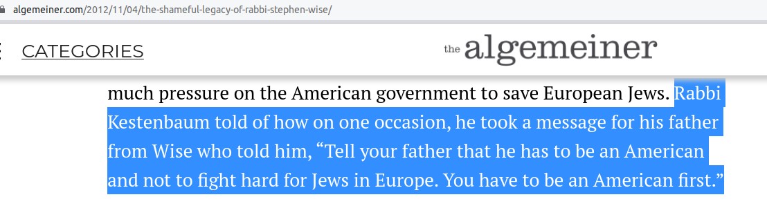 - Algemeiner: The Shameful Legacy of Rabbi Stephen Wise by Ronn Torossian