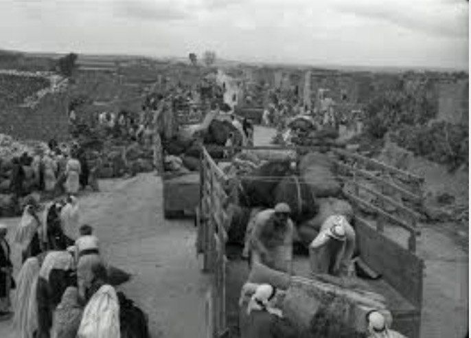 صورة لقرية عراق المنشية - فلسطين: : صورة نادرة تيين سكان عراق المنشية وهم يطردون من قريتهم في أبريل 1949.