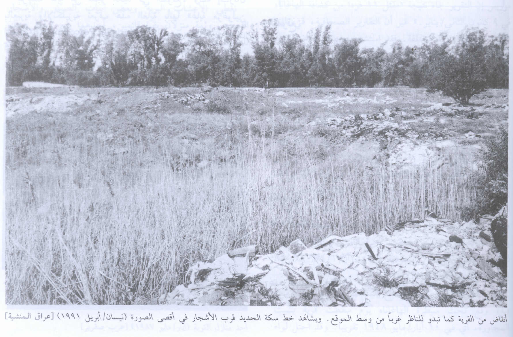 صورة لقرية عراق المنشية - فلسطين: : أطلال القرية المدمرة واضحة، اُنقر الصورة لتكبيرها. 1991 أنقر الصورة للمزيد من المعلومات عن البلدة