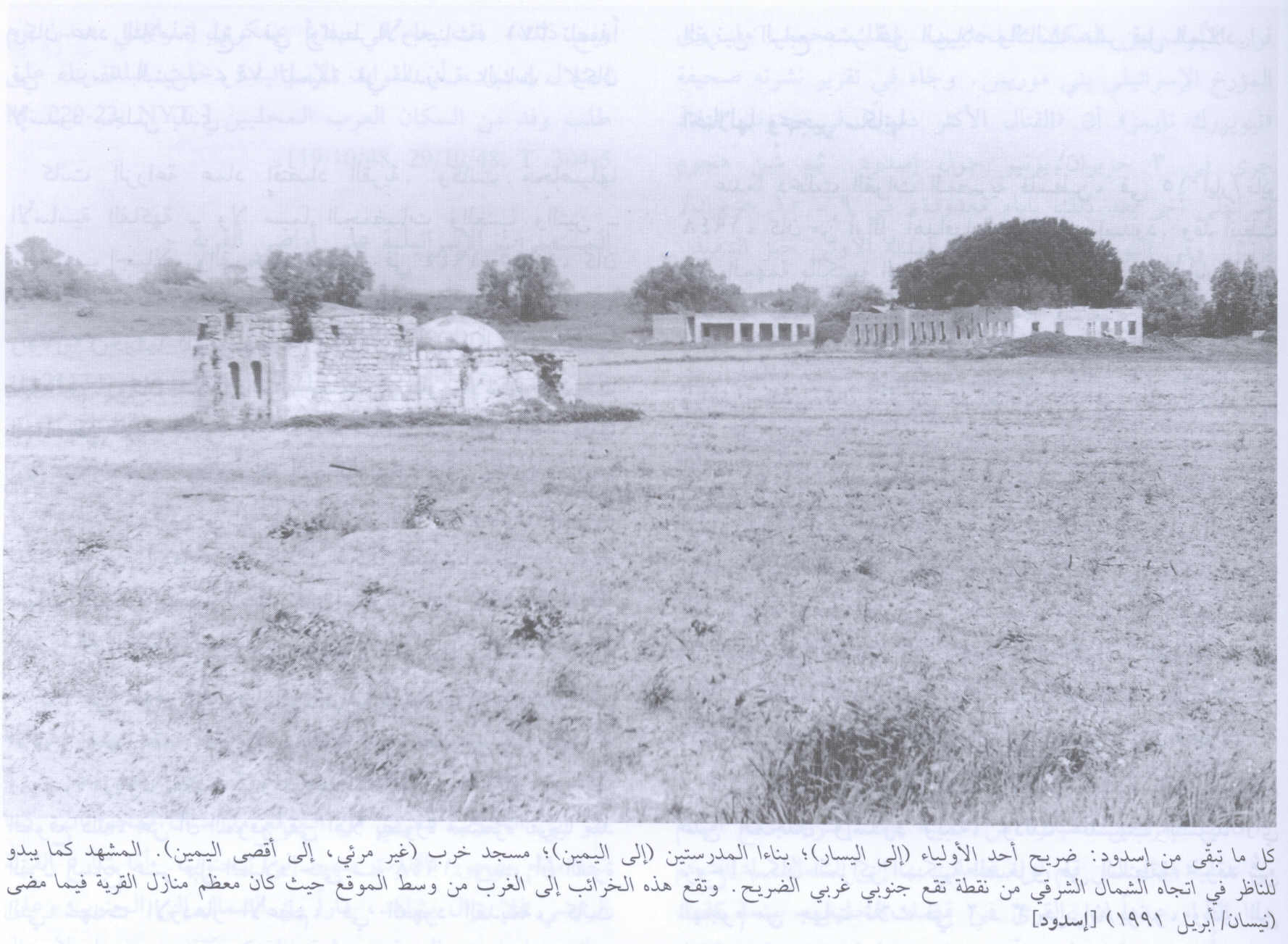 Village Before NakbaThe village stood on a sandy hill that overlooked wide areas to the east, north, and south, and faced a higher hill to the west. This hill was in fact the accumulated remains of many earlier towns with the same name. Isdud was about 5 km from the seashore, on the coastal highway, and next to the railway line. Its name was derived from that of the ancient town of Ashdod, which dated back to at least the seventeenth century B.C. According to the Bible (Joshua 13:1–3) it was one of the five major cities of the Philistines (the pentapolis). It should be distinguished from the harbor town which was known in the classical period as Azotos Paralios (or Minat al-Qal'a [114131] ), that is, 'by the sea.' This town was separated from Isdud by a 5-km-wide band of sand dunes. After the town was devastated by the Maccabees in the second century B.C. it was rebuilt, less than a century later, as a Roman town. Its name at that time was Azotus. During the Byzantine period the port town became more important than the mother town itself.Isdud came under Muslim rule in the seventh century. The Persian geographer Ibn Khurdadhbi (d. 912) called it Azdud and said it was a postal station between Ramla and Gaza. The Marnluk sultan Qaytbay (1467–1496) was said to have passed through the village in 1477 on his way to Damascus. (‘Attallah 1986:72–73]" In 1596, Isdud was a village in the nahiya of Gaza (liwa' of Gaza), with a population of 413. It paid taxes on a number of crops, including wheat, barley, sesame, and fruit, as well as on other types of produce such as goats and beehives. The Egyptian Sufi traveler As'ad al-Luqaymi, writing in 1730, reported visiting the khan or caravansary of Isdud after having left Gaza. In the late nineteenth century, the village of Isdud ran along the eastern slope of a low, garden-covered hill. The (by then) ruined khan stood southwest of the village. Its houses were one-storey high with walls and enclosures all built of adobe brick. The two main sources of water, a masonry well and a pond, were surrounded by groves of date-palm and fig trees. Baedeker estimated that it had 5,000 inhabitants before World War I and described it as standing 'on the slope of a hill commanded by a still higher eminence.' Isdud's Arab population was primarily Muslim. The village had two mosques and three tomb-shrines for Muslim historical and religious figures. The villagers erroneously believed that one of the shrines belonged to Salman al-Farisi, a companion of the prophet Muhammad. His shrine stood inside a mosque that had been built during the reign of the Mamluk sultan al-Zahir Baybars (1259–1277). A second shrine was believed to belong to an Egyptian, Shaykh al-Matbuli, and a third was devoted to Ahmad Abu al-Iqbal. Two elementary schools were established in Isdud, one for boys (opened in 1922) and a second for girls (built in 1942). The number of students reached 371 in the boys' school and 74 in the girls' by the mid-1940s. Isdud had a village council. Agriculture constituted the village's main source of livelihood. The main crops were fruit—especially citrus, grapes, and figs—and grain, particularly wheat. In 1944/45 a total of 1,921 dunums was devoted to citrus and bananas and 22,170 dunums were allocated to cereals; 8,322 dunums were irrigated or used for orchards. The villagers relied on both rainfall and irrigation from wells (which ranged from 15 to 35 m in depth) for water for their crops. In addition to agriculture, the inhabitants worked in commerce. Isdud had a number of shops and held a weekly Wednesday market that attracted people from neighboring villages. Commerce was facilitated by Isdud's train station, which was part of the coastal railway. In the vicinity, nine khirbas contained a wide variety of relics, including pottery fragments, mosaic floors, cisterns, and an ancient olive press. Excavations of the site itself determined that it had been occupied almost continuously from the seventeenth century B.C. until 1948. In antiquity its most flourishing periods appear to have been in the fourteenth and thirteenth centuries B.C. Village Occupation and Ethnic CleaningWhen Egyptian forces entered Palestine on 15 May 1948, one of their early objectives was to take up positions in Isdud. This task was assigned to the Egyptian Ninth Battalion. But on 22 May a new battalion reached the front, and Isdud was handed over to the Sixth Battalion, according to former Egyptian president Gamal Abdel Nasser, then a staff officer in that Battalion: (The foreign press did not report that an Egyptian column had reached Isdud until 30 May, but Abdel Nasser's eyewitness account seems more reliable.) At that point, Isdud was on the front lines between the Egyptian and Israeli forces. Israeli forces briefly cut off the road between al-Majdal and Isdud, but the Egyptians managed to dislodge them, thus restoring their supply lines. This occurred during the Israeli army's Operation Barak .The Israeli operational orders also called for an attack on al-Majdal, Isdud, or Yibna, to 'cause the wandering [i.e., exodus] of the smaller settlements in the area.' A three-pronged attack was launched on 2–3 June which led to the flight of thousands among the local population, according to Israeli historian Benny Morris. The New York Times reported that the 'bloodiest fighting' in the south of the country on 3 June was taking place around Isdud. Another Israeli attack was initiated a few days later, on 9–10 June. The following day, the first truce of the war took effect. Throughout the truce, Abdel Nasser was stationed at Isdud, from which he monitored Israeli military activity during this period. In the period between the two truces, Israeli commando units carried out raids in the vicinity of Isdud. A New York Times story on 16 July indicated that a unit named 'Samson's Foxes' had reached Egyptian positions at Isdud. The town of Isdud was not occupied until the end of the second 
