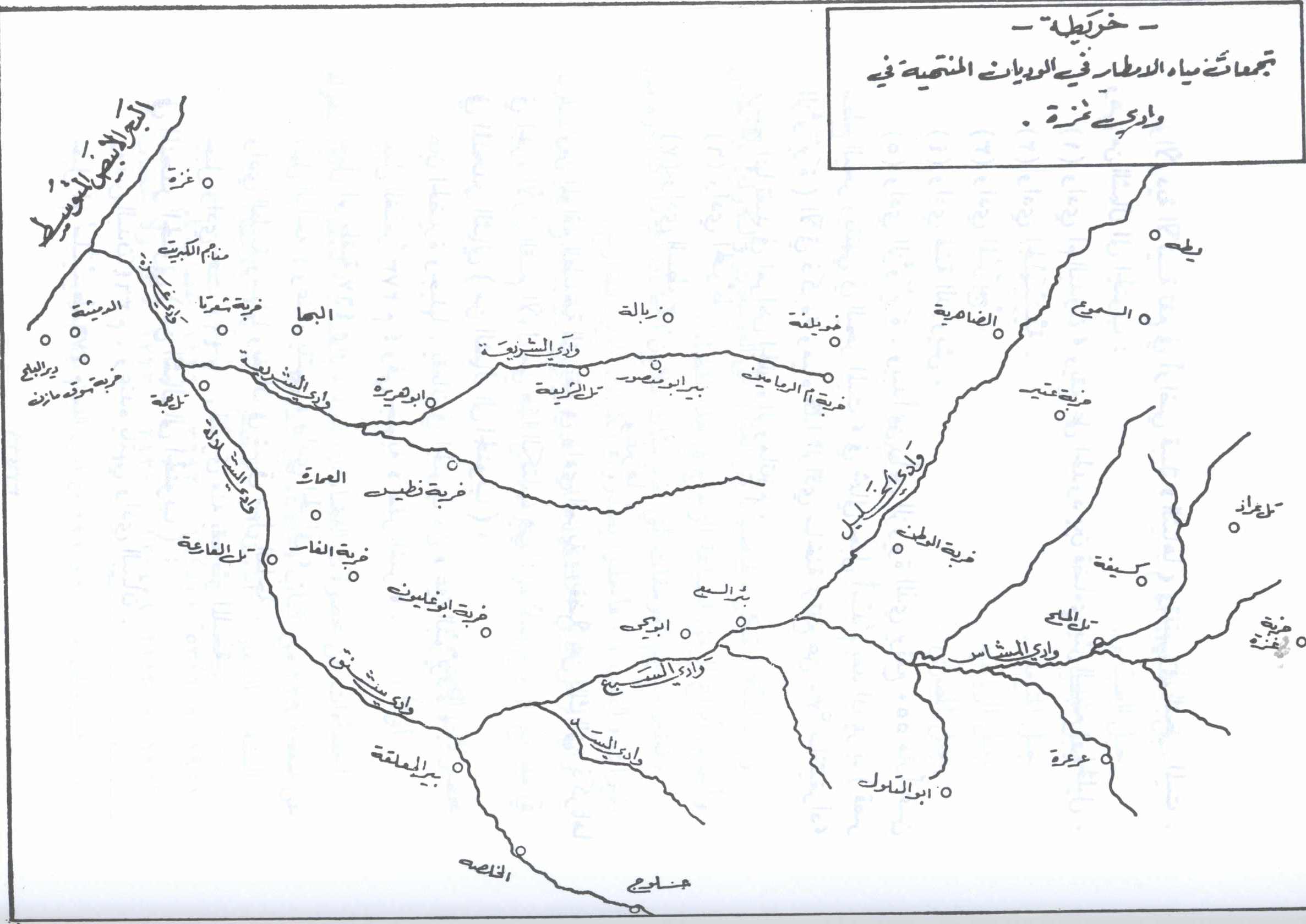 خرائط فلسطين: خارطة قضاء غزة توضح القرى (المهجرة والمدمرة) ومسار الاودية والانهر في القضاء |