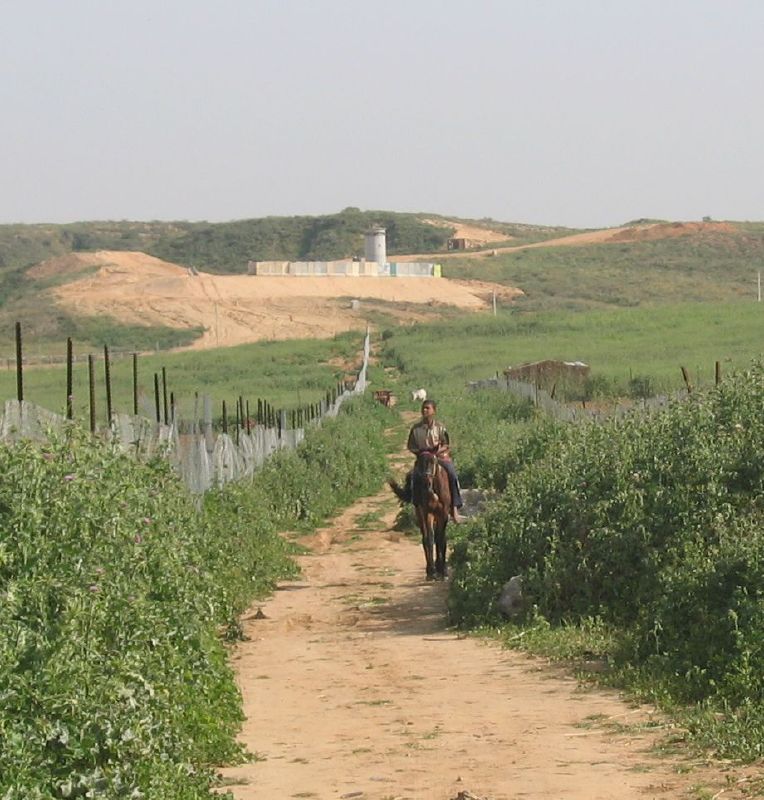 This picture was actually taken by me, and I think it was copid here from my picture blog http://www.flickr.com/photos/gazawia/. This picture is of a boy named Eid Abo Salah. His family lives only 300 metres from the border with Israel in northern Gaza, and their house is under constant threat of being destroyed by teh Israelis. THey are confined to the first floor of their house, and can only ride their horse as far as the shed. In the distance is visible an Israeli sniper tower that watches over them day and night.