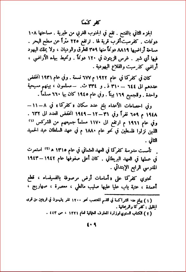 صورة لقرية كفر كمه - فلسطين: : كفر كما. فلسطين لا يعيش فيها سوى الشركس المسلمين بعد أن لجأوا لفلسطين خلال الحكم العثماني وأعادوا اعمارها، كان ذلك في عام 1867م.