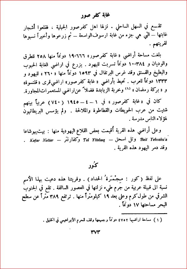 ومن طريف القول هنا أن أهل "البلد" -أي كور- لا يستطيعون التفريط بأرضهم لمن هم من خارج العائلة رغم ضيق ذات اليد ورغم الظروف الاقتصادية الخانقة التي يحياها أهلها الفلسطينيون عموماً في الزمن الصهيوني الردئ هذا وزمن الانحطاط العربي والإسلامي المُخجِل.