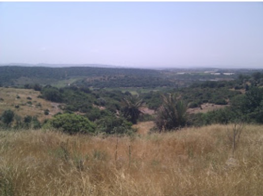 The site is fenced in with barbed wire. Scattered piles of stones, the debris of destroyed houses, are visible among thorns, cactuses and fig, olive, and palm trees. The surrounding lands are used by Israelis as a grazing area.
