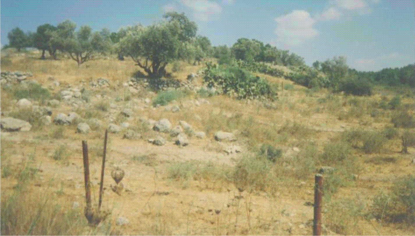 سُيّج الموقع، وبُني في مركزه (الذي سوي بالأرض) زريبة للبقر، وقن للدجاج، وأهراء للحبوب. ويحتوي القسم الجنوبي من الموقع على مصاطب حجرية، وبقايا منزل. بينما يحتل القسم الشرقي منه أحد أحياء المستعمرة. وينمو الصبار مع كثير من أشجار الخروب والزيتون على منحدرات الموقع.
