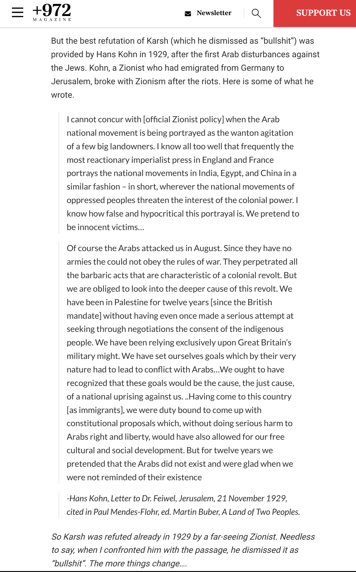 Let us pretend that Judah Magnus (one of the towering Zionist intellectual figures in the 20th century) didn't recognize that the 1929 Riot was politically motivated. As a response to the "riots", let us pretend also that Mr. Magnes NEVER asked the Zionist movement to abandoned its goal of making Palestine a majority Jewish country and to break away with the original intent of the Balfour Declaration (Peter Grose, p. 227-28).