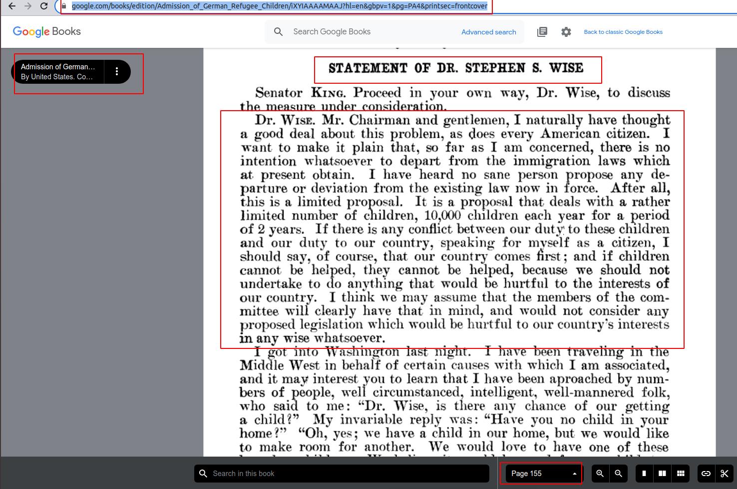 Most Zionists' leadership expressed a similar sentiment during the 1930s and 40s. For example, Chaim Weizmann spoke of something similar almost a year earlier, and here is Rabbi Stephan Wise lobbying US Congress against increasing immigration quotas (concerning German Jewish children) in early 1939, four months after Kristallnacht.Chaim Weizmann was also known to have said something similar to British officials around the same time (see Zionism during the Holocaust, p. 298).