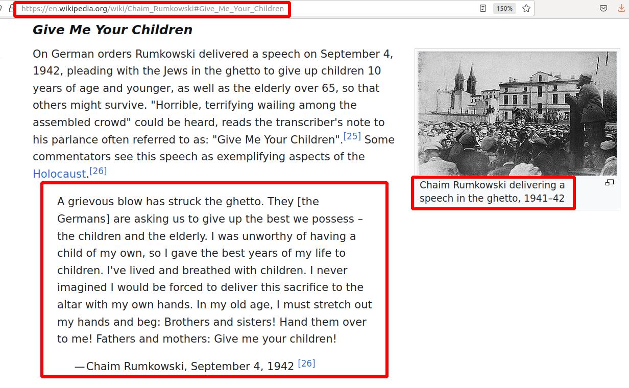 How was Ben-Gurion's hate speech not much worse than Chaim Rumkowski's "Give Me Your Children" speech, which he made during WWII in Lodz's Ghetto? The only difference was the geography, four years, and how both died. While Ben-Gurion was safe in Palestine, enjoying Great Britain's protection, Chaim fell under Nazi occupation and later was killed in Auschwitz (by other Jews) when he was identified. Note how Wikipedia's editors still hide the fact that the chief of Kapos was a big Zionist activist who heeded Herzl's advice not to confront antisemites who will become Zionists' biggest friends. (The Transfer Agreement p. 226)