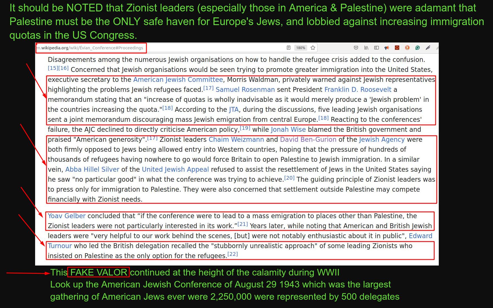 Referencing the last paragraph again, we find it necessary to dig further into Zionists' minds to understand why they implemented such a policy before, during, and after WWII. We asked ourselves: what if rescuing Jews was successful at Evian and much of the Holocaust was avoided, wouldn't saving Europe's Jews would have rendered the Zionist project mute? In depth, we have addressed that in another section.