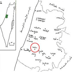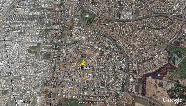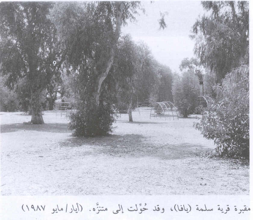 Village Before NakbaThe village stood on flat terrain on the central coastal plain, on the north side of a highway leading to Jaffa. [[Kana'na and 'Abd al-Hadi 1986:31]] The inhabitants believed that their village was named after Salama Abu Hashim, a companion of the Prophet Muhammad, who was buried in the village in A.D. 634. His tomb, on the northwest side of the village, became known as the shrine of Sayyiduna (our master) Salama. [[ibid.:9, 31]] In 1596, Salama was a village in the nahiya of Ramla (liwa' of Gaza) with a population of ninety-four. It paid taxes on a number of crops, including wheat and barley, as well as on other types of property such as goats and beehives. [[Hut. and Abd.:154]] The Syrian Sufi traveler al-Bakri al-Siddiqi, who traveled in the area in the mid-eighteenth century, visited the above-mentioned shrine. [[Al-Rihla, cited in al-Khalidi 1968:152]] In the late nineteenth century, Salama was a village built of adobe brick and had a few gardens and wells. [[SWP (1881) II:254]] During the British Mandate, Salama was divided into quarters, each quarter inhabited by a hamula (clan) or sub-clan. The houses were at first clustered together, with the houses of each hamula or sub-hamula centered around a large courtyard (hawsh) that had a single common entrance. The courtyard provided private space for women to do their household chores, for children to play, and for families to gather in the evening or on special occasions. Some families also built houses in the orchards; these did not usually belong to hamulas. Although most houses were constructed of adobe brick, some people built stone houses and Baghdadi houses, which were made of wood and insulated with gravel and whitewash on the inside. [[Kana'na and 'Abd al-Hadi 1986:30, 35]] The population was comprised of 6,670 Muslims and 60 Christians. Salama had two elementary schools, one for boys and another for girls. The boys' school was opened in 1920 and the girls' in 1936; 504 boys and 121 girls were enrolled in 1941. The villagers also supported a soccer team. There were numerous shops in the village, including five coffee shops. During the Mandate, a transportation company that owned cars and buses was established in Salama, with partners from the neighboring village of al-'Abbasiyya; the company was called the Salama–al-'Abbasiyya Automobile Company. [[Kana'na and 'Abd al-Hadi 1986]] The villagers worked primarily in agriculture and associated activities, and to a much lesser extent in commerce and the civil service. In 1944/45 a total of 2,853 dunums was devoted to citrus and bananas and 2,266 dunums were allocated to cereals; 370 dunums were irrigated or used for orchards. Agriculture was both rainfed and irrigated; irrigation water was drawn from some eighty-five artesian wells. [[Kana'na and 'Abd al-Hadi 1986:32]] The residents shipped their produce in Jaffa and sold some of it in nearby Zionist settlements. They also shipped milk to a dairy factory in Jaffa that was owned by two men from Salama. Village Occupation and Ethnic CleaningSalama was hemmed in by a number of Jewish settlements and came under almost continuous attack for a period of five months, beginning on 5 December 1947, a week after the passing of the United Nations Partition Resolution. The New York Times reported that members of the Haganah opened fire with machine-guns at Salama on that date and that Arab families were evacuating the area and moving towards Ramla and Lydda. The Palestinian newspaper Filastin reported a two-pronged attack on the same date, which abated when British police arrived and later resumed during the night. Sniping and further attacks were reported over the following two days. The History of the Haganah states that in December 1947 'the Haganah leadership in Tel Aviv decided to attack the infamous village of Salama,' adding that 'this was the first attack on an Arab village.' The assault was carried out at dawn on 19 December and was unsuccessful. Palestinian historian 'Arif al-'Arif mentions another raid on 28 December and writes that it was preceded by a diversionary attack from the settlement of Petach Tiqwa. The raid originated at Ramat Gan, where the Zionists had assembled a large force drawn from the Jewish Settlement Police and the Irgun Zvai Leumi (IZL). The village's defenders managed not only to drive the attackers back, but mounted a counteroffensive against Petach Tiqwa, where they were joined by militiamen from Lydda and al-'Abbasiyya. [[F:6/12/47, 7/12/47, 8/12/47; NYT:6/12/47, 11/1/48; R:274–79; S:1379]] In early January 1948, the villagers had set up various makeshift defenses around Salama. The New York Times reported on 11 January that British army units had used gunfire to clear four roadblocks around the village and had told the mukhtar to make the people fill in a large ditch 'presumably intended as a defense measure.' Filastin described the same incident, adding that the army justified its actions by saying that it needed to move freely through the area. The defensive barriers were evidently being put to good use, since Filastin reported no less than ten separate attacks on the village in the month of January alone, sometimes more than one in a single night. [[F:11/1/48; NYT:11/1/48]] The Zionists believed that Salama provided shelter for nonlocal guerrillas, but al-'Arif writes that it was the villagers themselves who organized a militia of around 30 men, in the wake of the UN Partition Resolution in November 1947. After that, scarcely a day went by without a skirmish around the village, during which 'bullets rained down' upon Salama. On 18 January 1948, Israeli historian Benny Morris records a major Zionist attack on the village, by the Third Battalion of the Alexandroni Brigade. The operational orders for the January operation stated: 'The aim is… to attack the northern part of the village of Salama … to cause deaths, blow up houses and to burn everything possible.' A qualification w