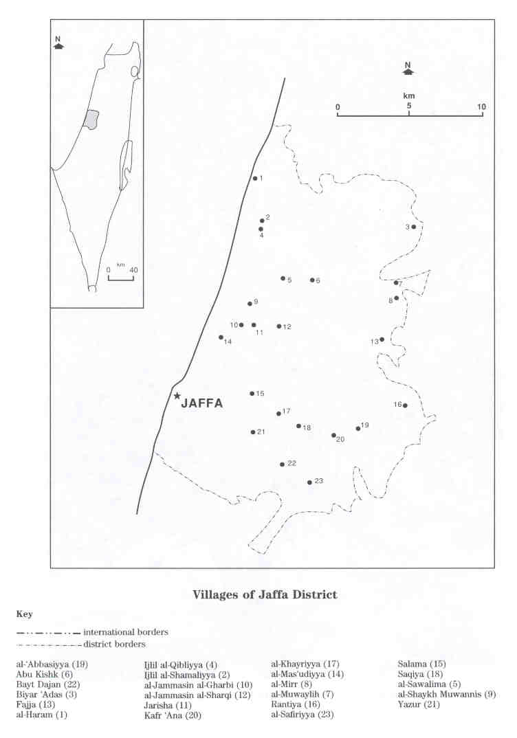 Map Of The Destoryed & Depopulated Villages In Jaffa District |