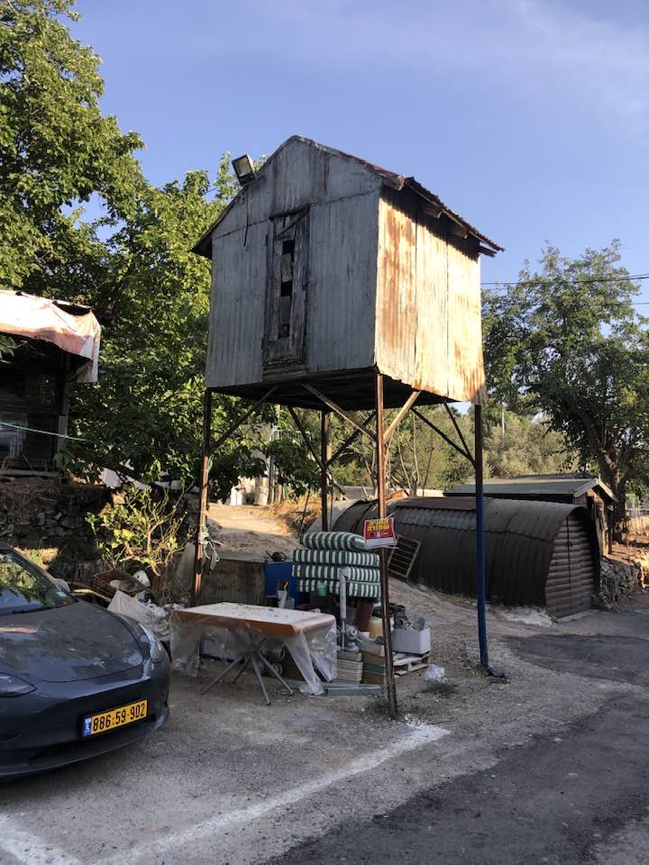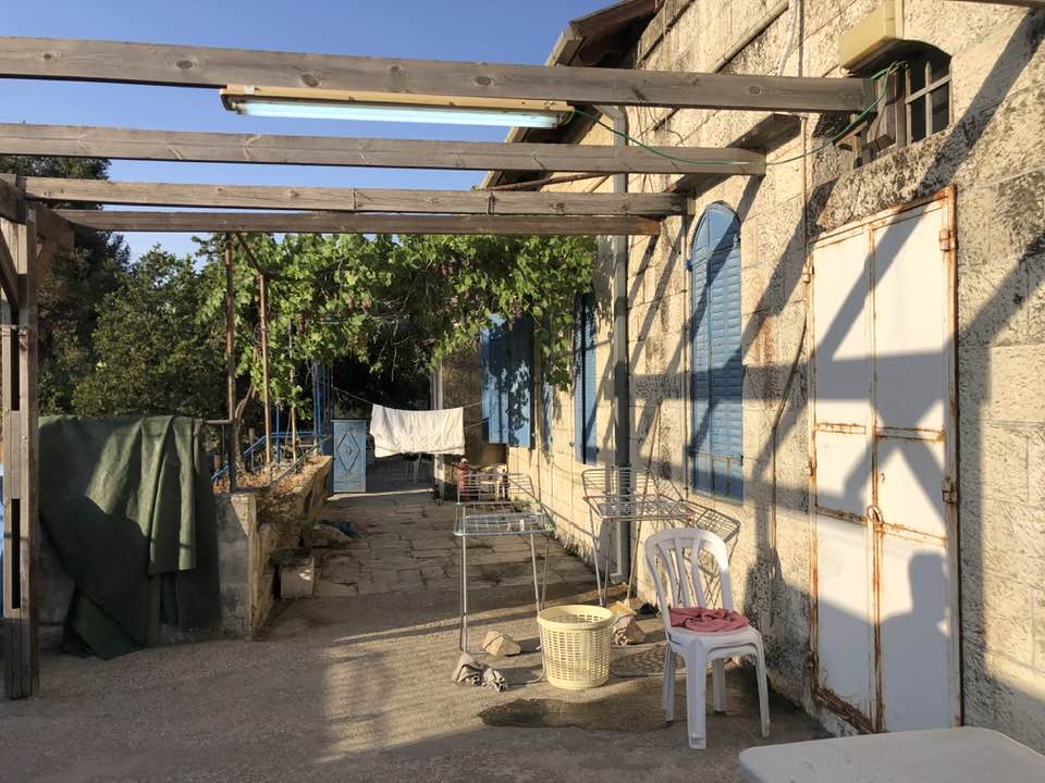 Only a few houses still stand, in the southwestern part of the site, by the cemetery. They have arched doors and windows. One of the houses is now occupied by a Jewish family. Stone rubble, parts of collapsed cement roofs, and iron window frames are scattered throughout the site. An old synagogue, built in 1871, still stands; it has arched gates and windows. The wild grass that grows on the site is burned off every year to clear the approaches to the nearby settlement. The village terraces have been preserved. Almond, fig, and olive trees, along with cactuses, grow on the terraces and along the bottom of the slope.