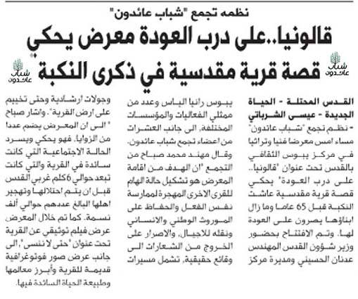 Israeli sources give differing accounts of how the village was depopulated. Morris claims that the villagers had already fled on 2 or 3 April as a result of an attack, but an Irgun Zvai Leumi broadcast stated at the time that the inhabitants of Qalunya had fled as a result of the Deir Yasin massacre on 9 April. The Times correspondent wrote that most villagers had been evacuated and the others were ordered out before the village was destroyed.