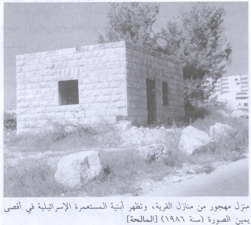 Village Temains | Many houses remain standing and occupied by Israeli Jewish settlers, although few houses, on the south side, were demolished. al-Maliha's mosque remain standing, but it is CLOSED for worshipers, unless you have an idea on how to open it! | |||||||||||||||||||||