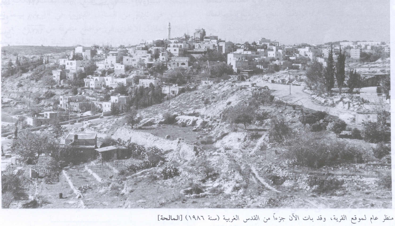 Village Before NakbaThe village stood on a plateau, overlooking a wide area on all sides but the north. A newer part of the village was built on the southeastern slope of a neighboring hill. A short secondary road linked al-Maliha to a highway leading to Jerusalem, and other secondary roads and dirt paths connected it to neighboring villages. Biblical scholars have identified this village with Manahath (Joshua 15:59). In 1596 al-Maliha was a village in the nahiya of Jerusalem (liwa' of Jerusalem). It was known as Maliha al-Sughra and had a population of 286. It paid taxes on wheat, barley, and olive and fruit trees. Taxes were also paid on goats and beehives. Mary Rogers (the sister of Edward Thomas Rogers, British vice-consul in Haifa in the 1850s), passed by the village in 1855 and reported that it was on the summit of a steep hill, with large kilns for preparing charcoal on the terraces below it. At that time it was the home of one of the most influential families in the Jerusalem Mountains, the al-Shaykha. As Jerusalem expanded, al-Maliha became one of its suburbs. The British surveyors who authored the Survey of Western Palestine saw al-Maliha in the 1870s and described it as a village of moderate size, standing high on a flat ridge. To the south of it, in a valley, was 'Ayn Yalu. The village plan was rectangular, and most of its houses were built of stone. Its population was predominantly Muslim, with only about 10 Christians out of an estimated total of 1,940 in 1945. It had a public elementary school, a medical clinic, a few shops, and a village council. It also had a large mosque named after 'Umar ibn al-Khattab, the second Muslim caliph.Most of the villagers worked in rainfed agriculture and livestock breeding, but some worked in crafts, commerce, and services. Their lands were planted in grain, vegetables, and fruit. In 1944/45 a total of 1,013 dunums was allocated to cereals; 2,613 dunums were irrigated or used for orchards, of which 1,370 dunums for olives. Wild vegetation covered the slopes of the neighboring mountains, which were used for grazing. There were many rock-cut tombs in and around the village, and a ruined tower stood near the mosque. This and the artifactual evidence on the site all suggested the great antiquity of the village. Village Occupation and Ethnic CleaningThe earliest attack against al-Maliha occurred on 6 March 1948, according to a report in the Jaffa-based Palestinian daily Filastin. The report said merely that a Jewish unit infiltrated into the outskirts of al-Maliha and clashed with the village's defenders; it made no mention of casualties. Israeli historian Benny Morris implies that the village was evacuated in two waves; the first occurred in April, as a result of the massacre in nearby Deir Yasin on 9 April.But the village was not completely emptied until mid-July, when it was directly attacked after the first truce of the war. The New York Times indicates that the Haganah began to encroach on al-Maliha on the night of 1−2 May when it extended its positions southwards from the Qatamon sub-disctrict of Jerusalem. But the History of the War of Independence relates that the village was occupied about ten weeks later, during operations conducted around Jerusalem in conjunction with Operation Dani (see Abu al-Fadl, Ramla sub-disctrict). After a fierce battle that lasted for several days, the village fell firmly into Israeli hands. On the night of 13−14 July, a company from the Irgun Zvai Leumi (IZL) and two platoons from the Yonathan Company of the Gadna (Palmach Youth Battalions) entered al-Maliha, taking up positions in the village. Arab forces launched a counterattack on 15 July, forcing the IZL unit to withdraw from the furthest position in the village. That same day, the Egyptian irregulars operating south of Jerusalem alongside Palestinian guerrillas announced taking al-Maliha in a communiqué quoted by the New York Times, but it was soon reoccupied after the arrival of IZL reinforcements. The Times reported that the Israelis were using medium artillery and mortar fire to mount diversionary attacks on the Jerusalem front on 14 July. The objective was to take the 'important supply base and assembly center' of al-Maliha, according to the paper's correspondent. By 16 July, the Times reported that the village was in Israeli hands and that an Arab counterattack on that day, which resulted in the deaths of fifteen Irgun men and left twenty others wounded, did not succeed in recapturing it. (The IZL said it had been 'let down' by the Haganah, which withdrew from a flanking height and failed to give covering fire during the Arab assault, but the Haganah denied the charges.) A few days later, on 22 July, the Israeli commander of the Jerusalem area, David Shaltiel, told the Times correspondent that the 'strategic' villages of al-Maliha and 'Ayn Karim had been occupied between the truces, thus ending a 'threatened Egyptian invasion' of Jerusalem. Zionists Colonies on Village LandsZionists established the suburb of Manachat (167129) on the village site in 1949.Village TodayMany houses are still standing and are occupied by Jewish families, although a few houses on the southern side of the village have been demolished. The inhabited houses are generally two-storey structures built of limestone, with arched windows and doors. Some houses have balconies with roofs that are supported by columns and circular arches. The school building is abandoned and its classrooms are filled with refuse. Some of the village streets are wide and paved while others are narrow alleys that are interrupted at points by limestone steps. The village mosque, with its tall, round minaret, still stands in the center of the village (see photos). It is closed and in a state of neglect. The village cemetery is on the southern edge of the site. Five large tombs stand out among the smaller ones. One of the graves is open, and human bones are visible. Orchards grow on the southern and 