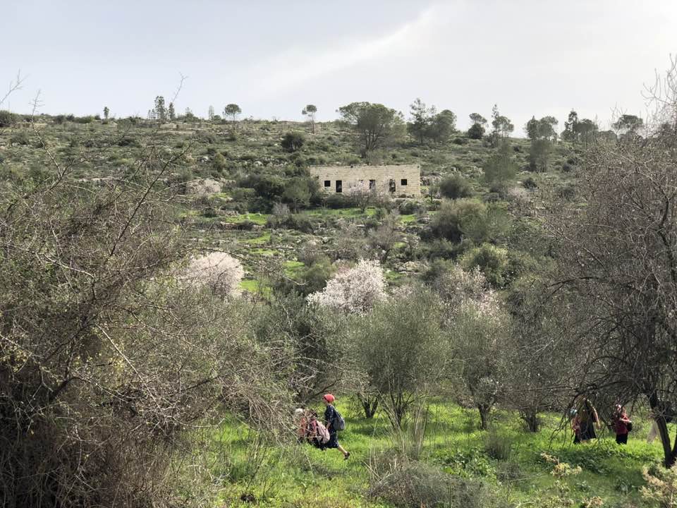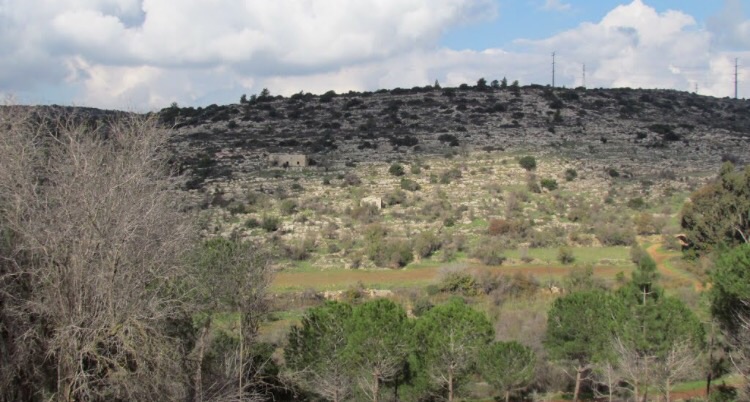 Six houses have been destroyed and their rubble is strewn over the site; four others still stand. Clusters of trees grow along the terraces on the valley bottom. Almond, olive, and cypress trees grow at the northern edge of the site. To the east, eucalyptus trees grow around the ruins of what had been a stone house. A spring flows north of this ruined house.