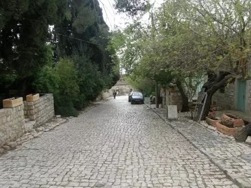 The settlement of Ro'sh Pinna occupies the village site. Many of the houses remain; some are used by the residents of the settlement; other stone houses have been abandoned and destroyed (see photo). The entrance of one house has a basket-handle arch.