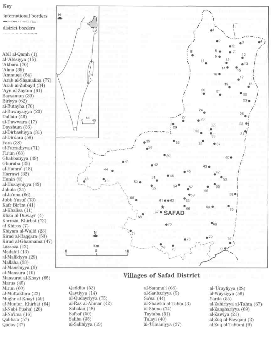 Map Of The Destoryed & Depopulated Villages In Safad District |